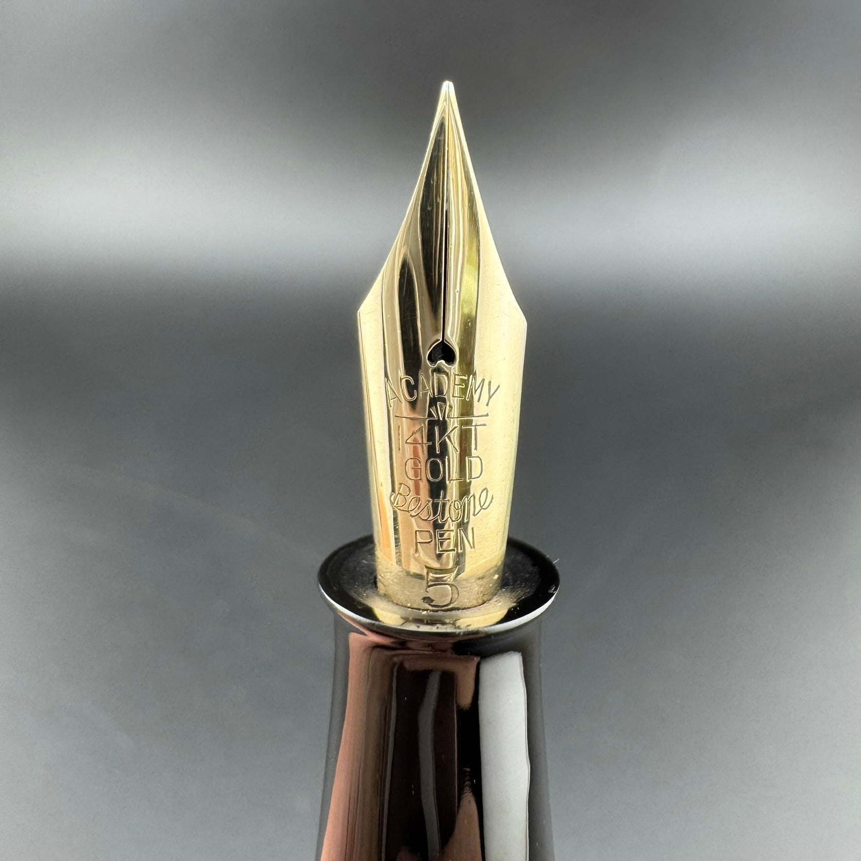 This pen has had the worn out, original cork shutoff valve seal replaced with o-rings. Providing a great alternative to prevent leaks near the back of the pen. 90 day warranty on service work.