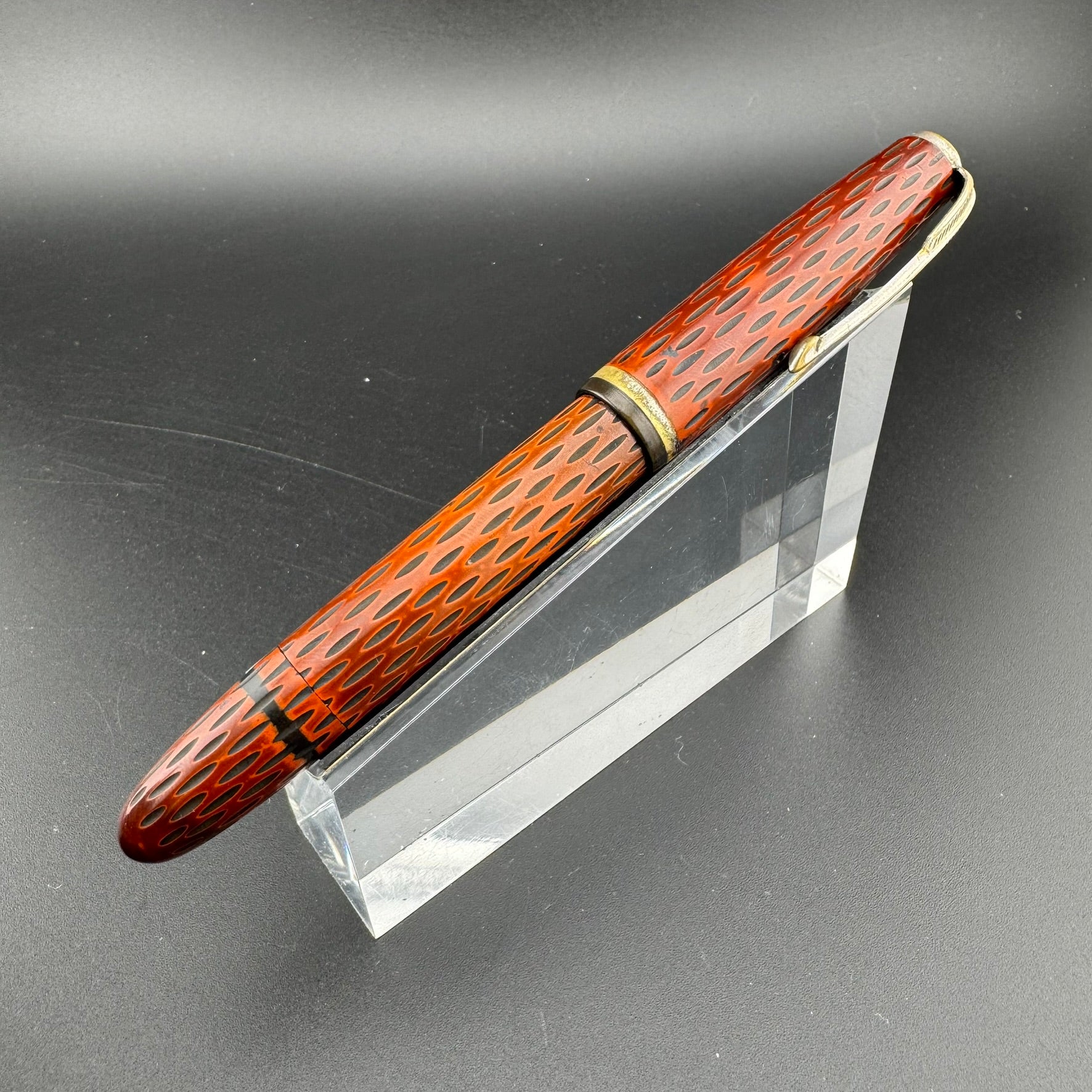 This pen has had the worn out, original cork shutoff valve seal replaced with o-rings. Providing a great alternative to prevent leaks near the back of the pen. 90 day warranty on service work.