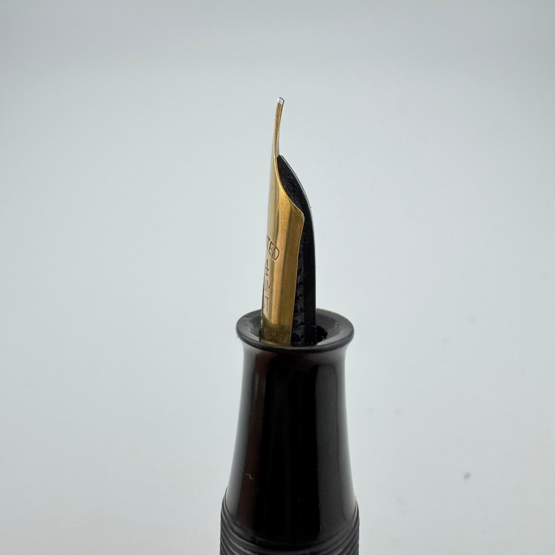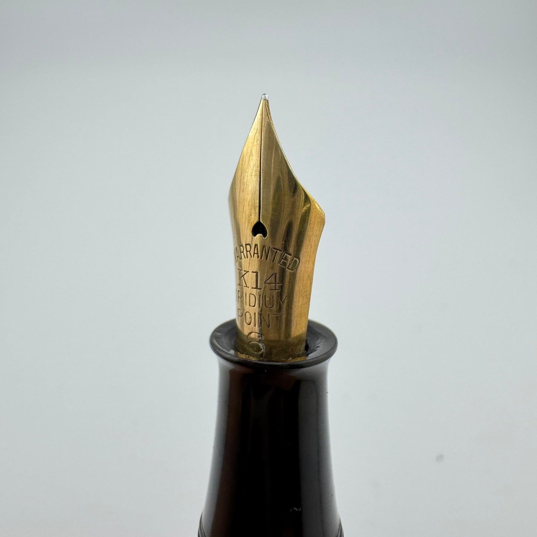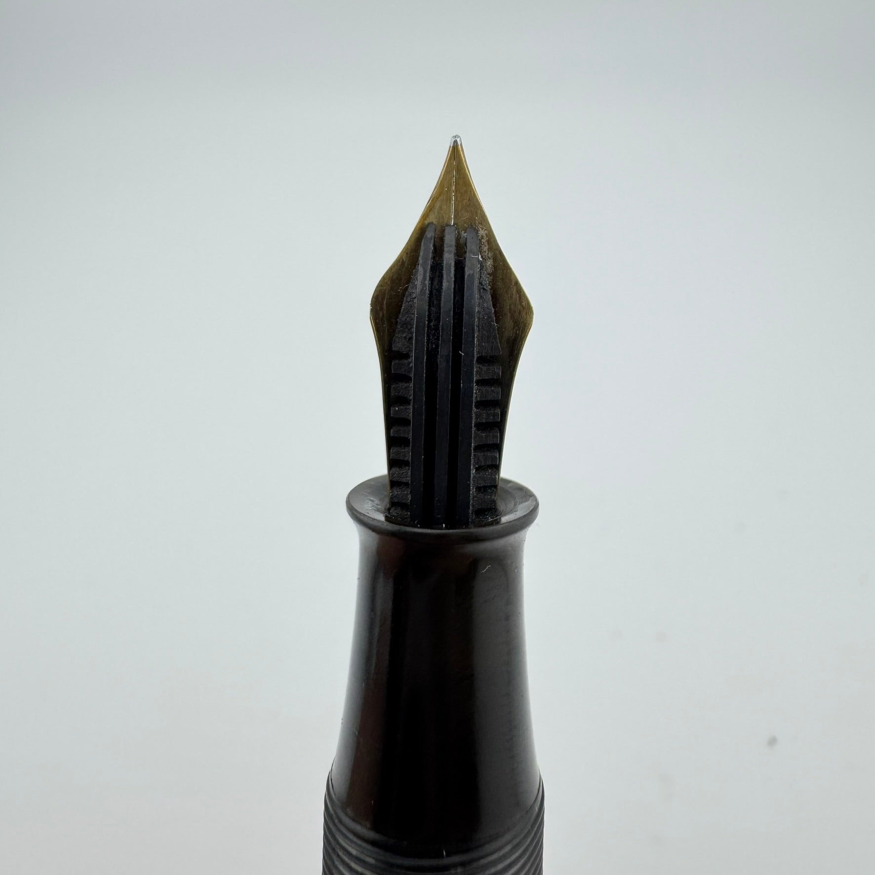 This pen has had the worn out, original cork shutoff valve seal replaced with o-rings. Providing a great alternative to prevent leaks near the back of the pen. 90 day warranty on service work.