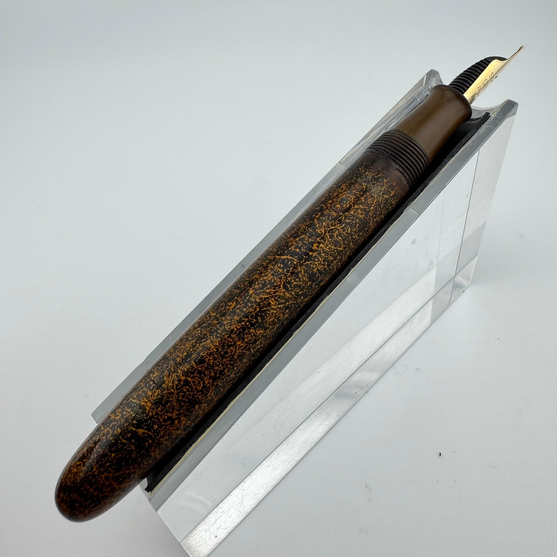 This pen has had the worn out, original cork shutoff valve seal replaced with o-rings. Providing a great alternative to prevent leaks near the back of the pen. 90 day warranty on service work.