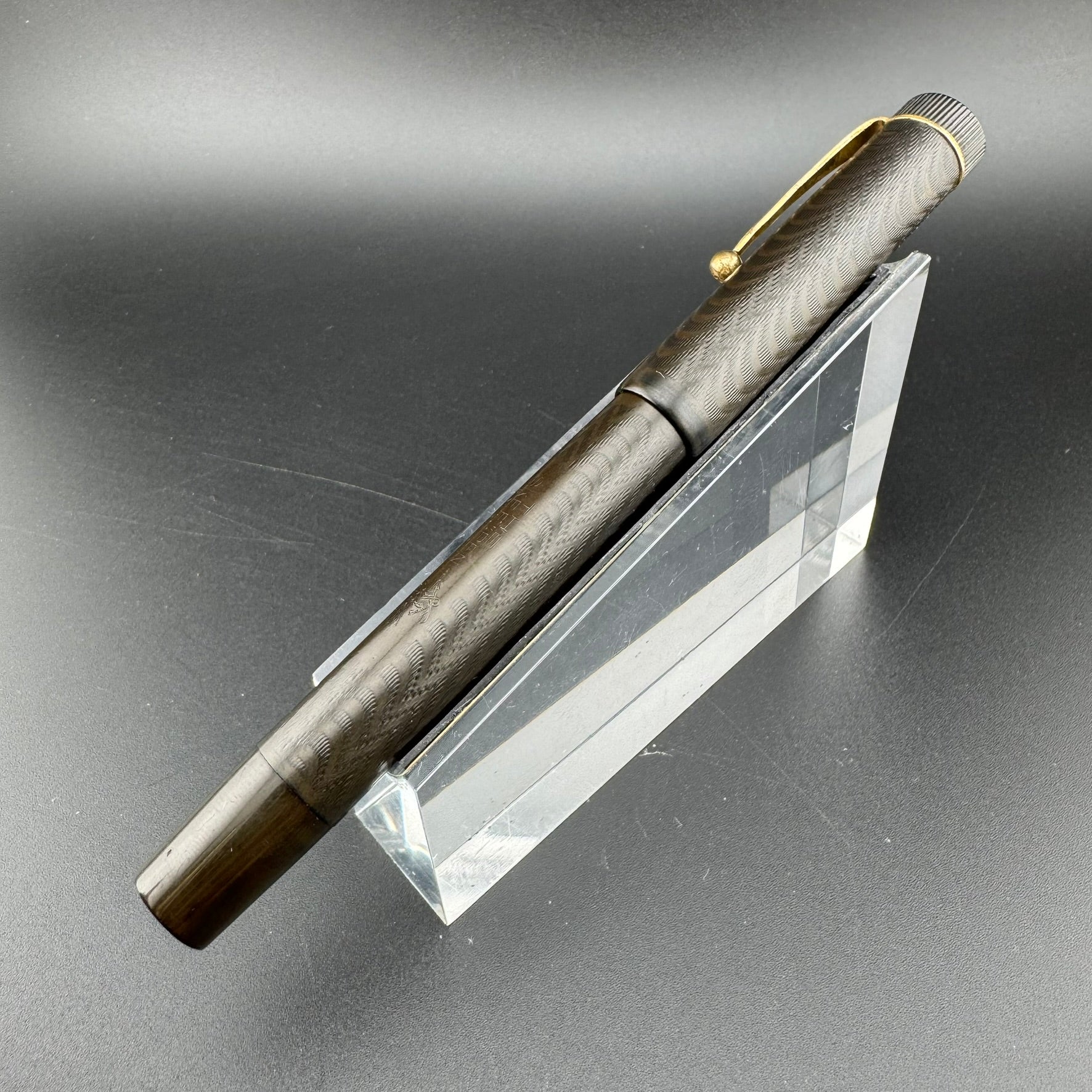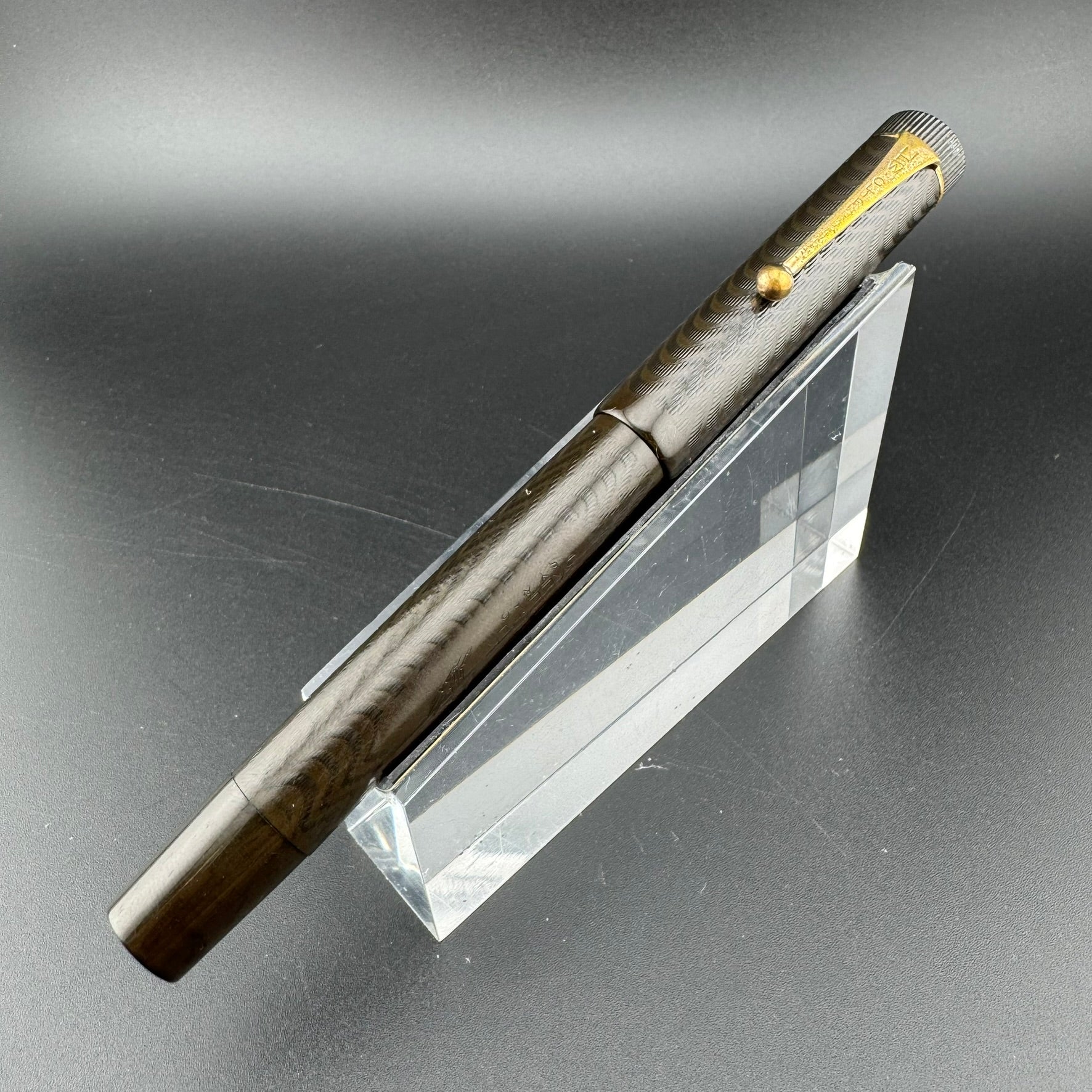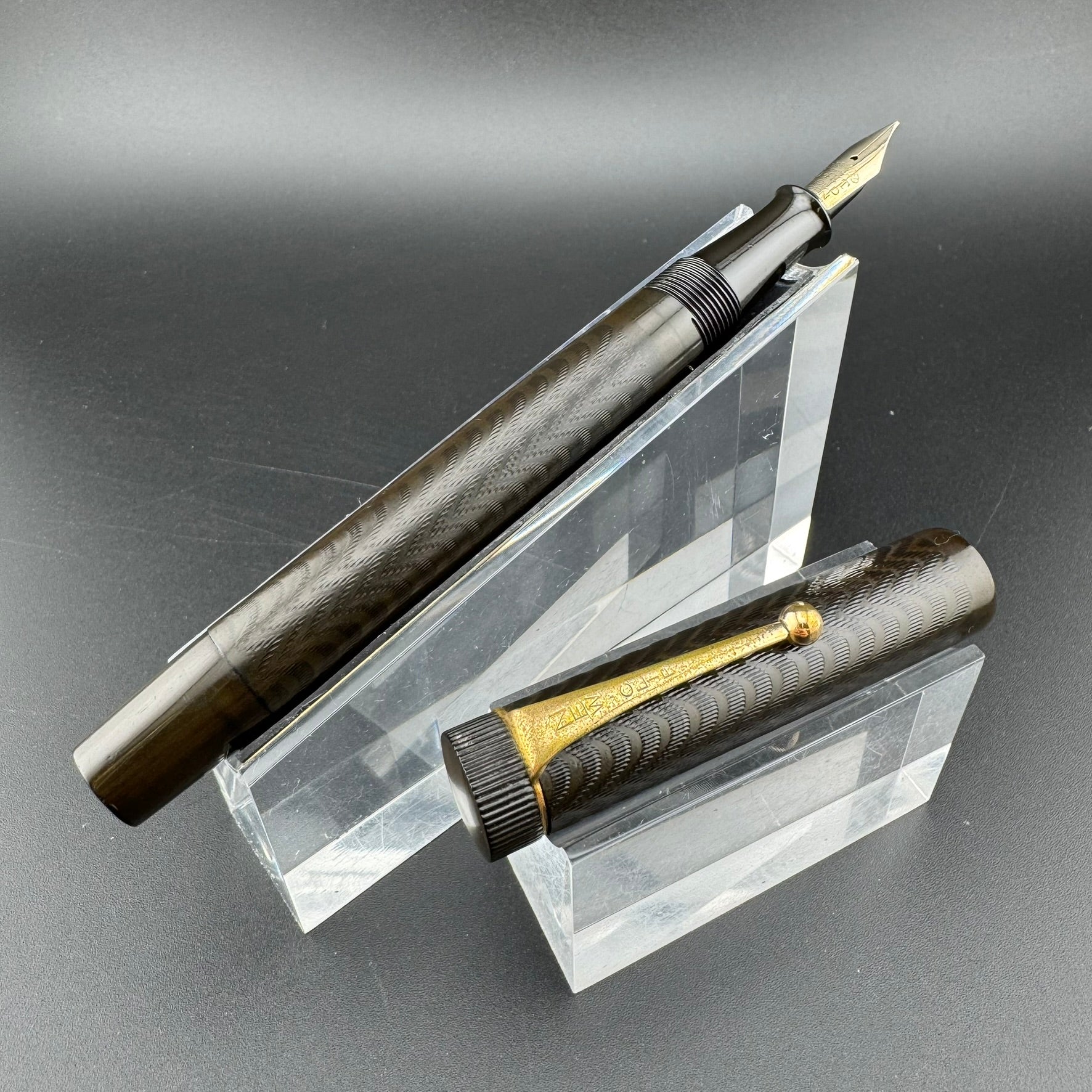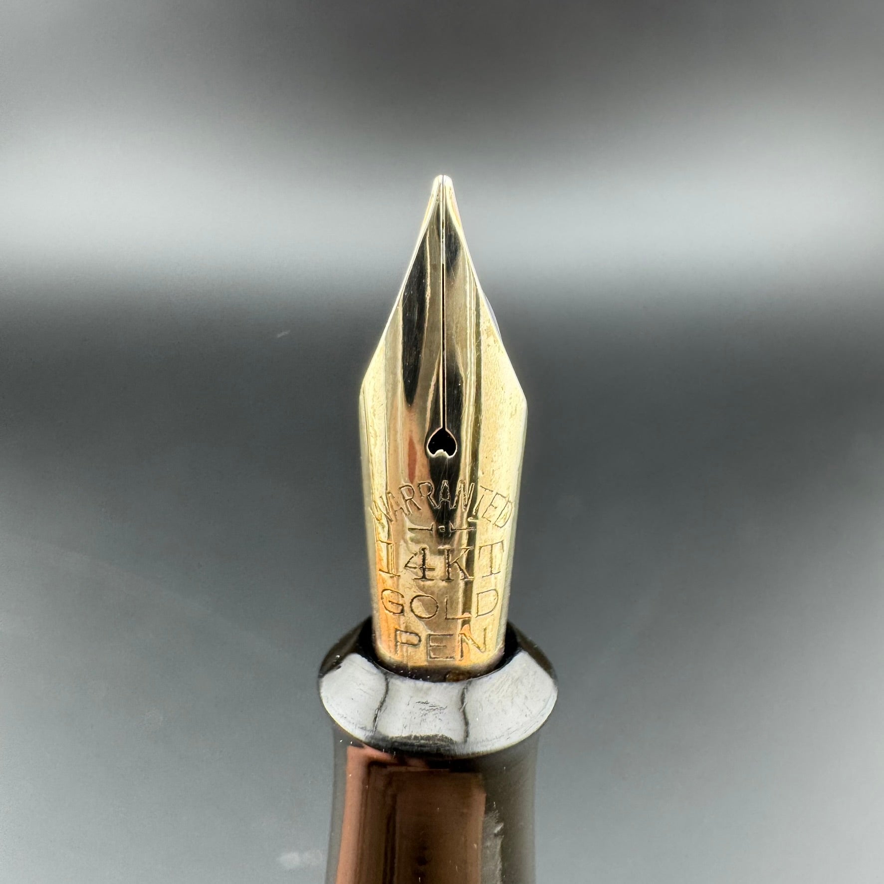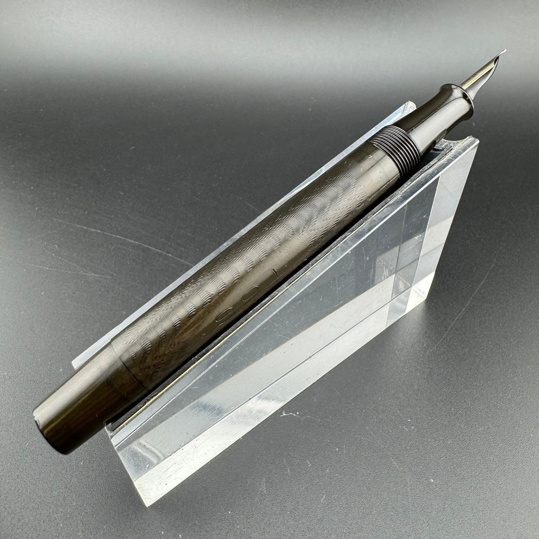 This pen has had the worn out, original cork shutoff valve seal replaced with o-rings. Providing a great alternative to prevent leaks near the back of the pen. 90 day warranty on service work.