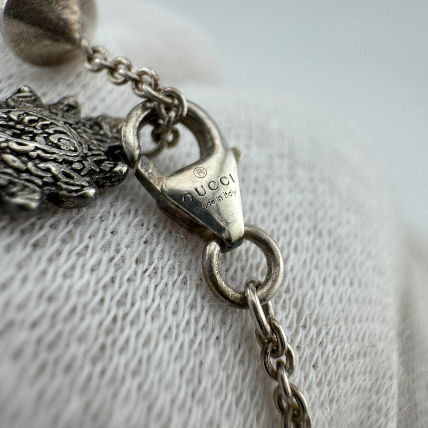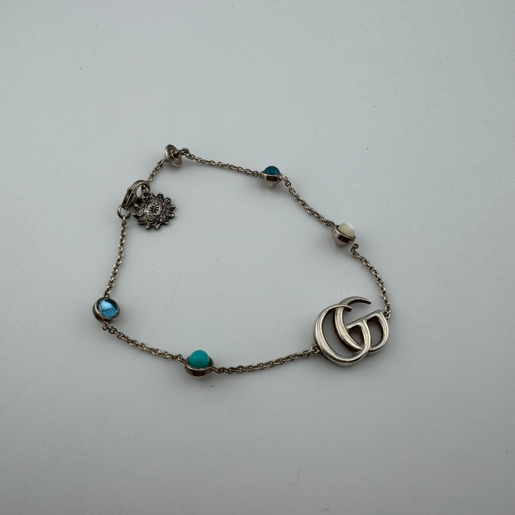 GUCCI GG Marmont 925 Sterling Silver Jewel Dangle Bracelet w/Box
