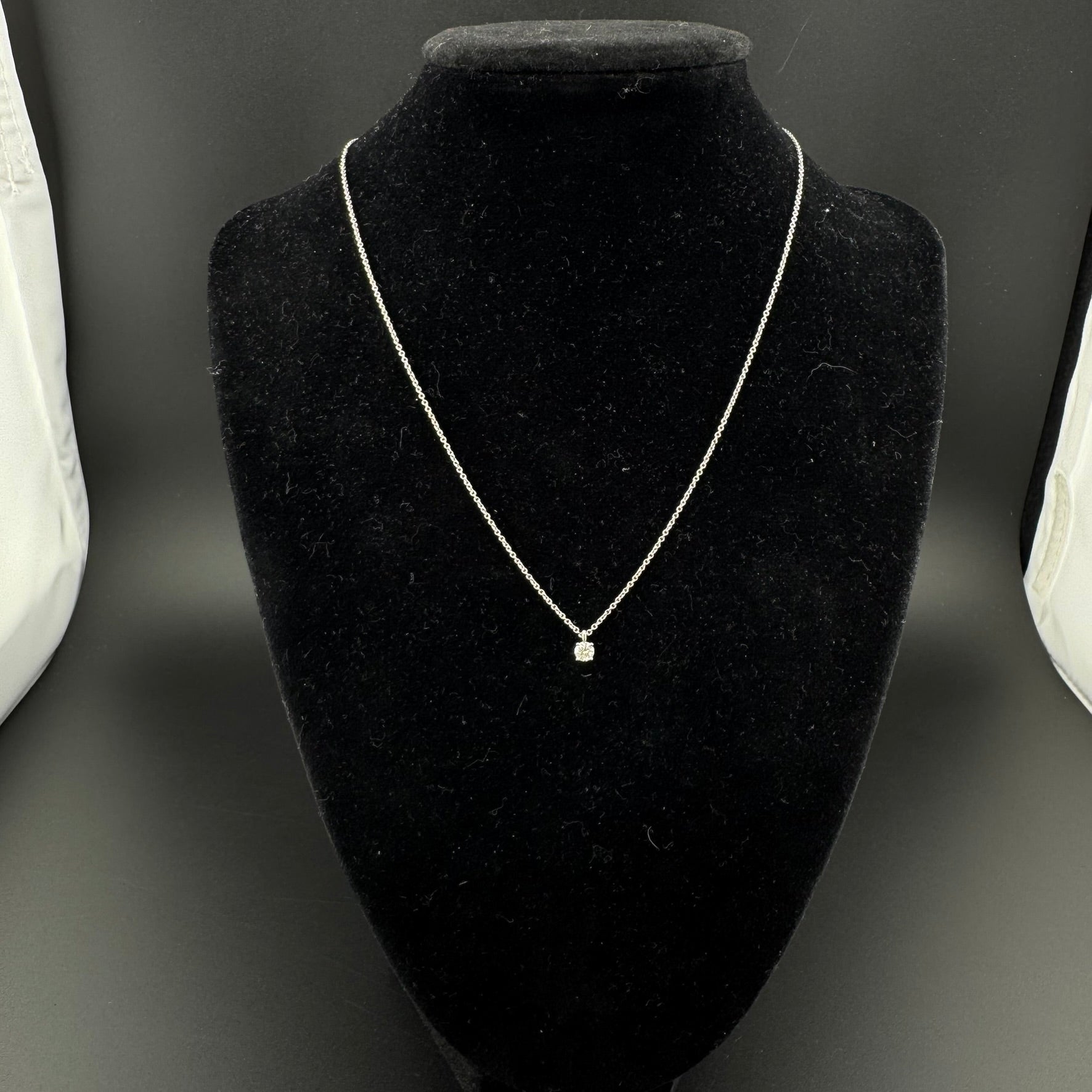 Tiffany & Co. Solitaire Platinum & Diamond Pendant Necklace 0.17ct 16in