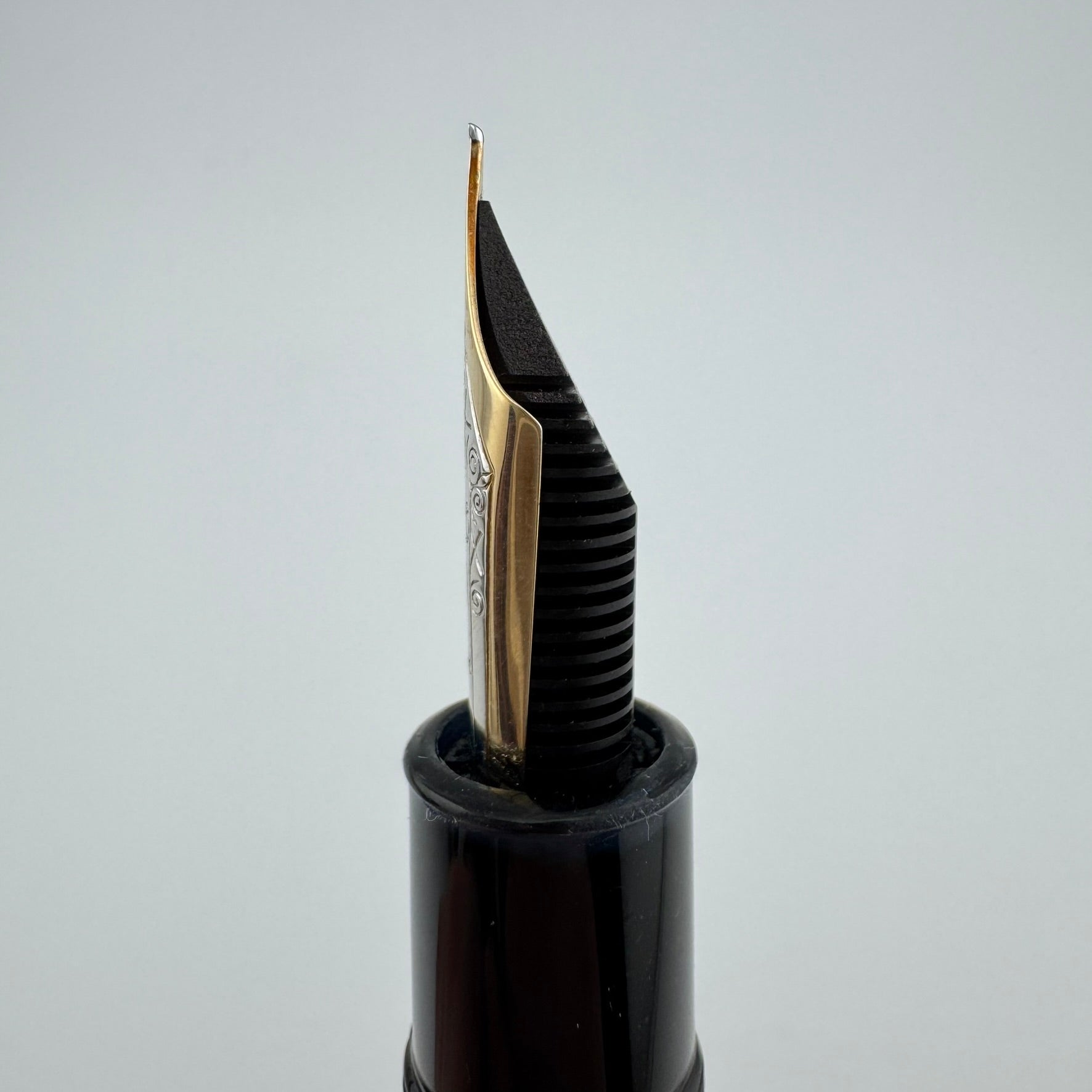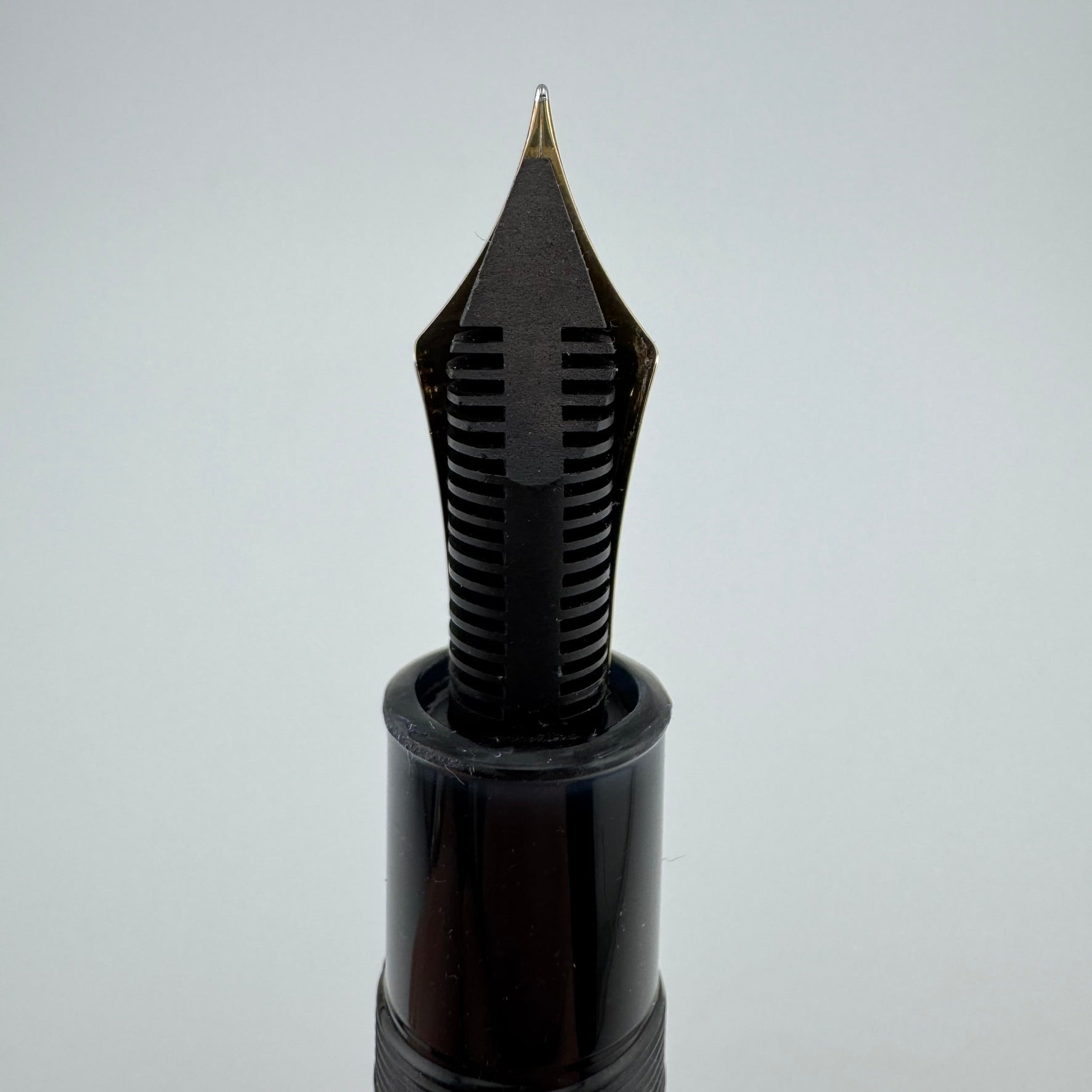 Montblanc 149 fountain pens can be dated by identifying a few key differences between the nibs and feeds. This pen was produced sometime between 1975 and 1976 due to the 14C Two-Tone nib and solid ebonite feed.
