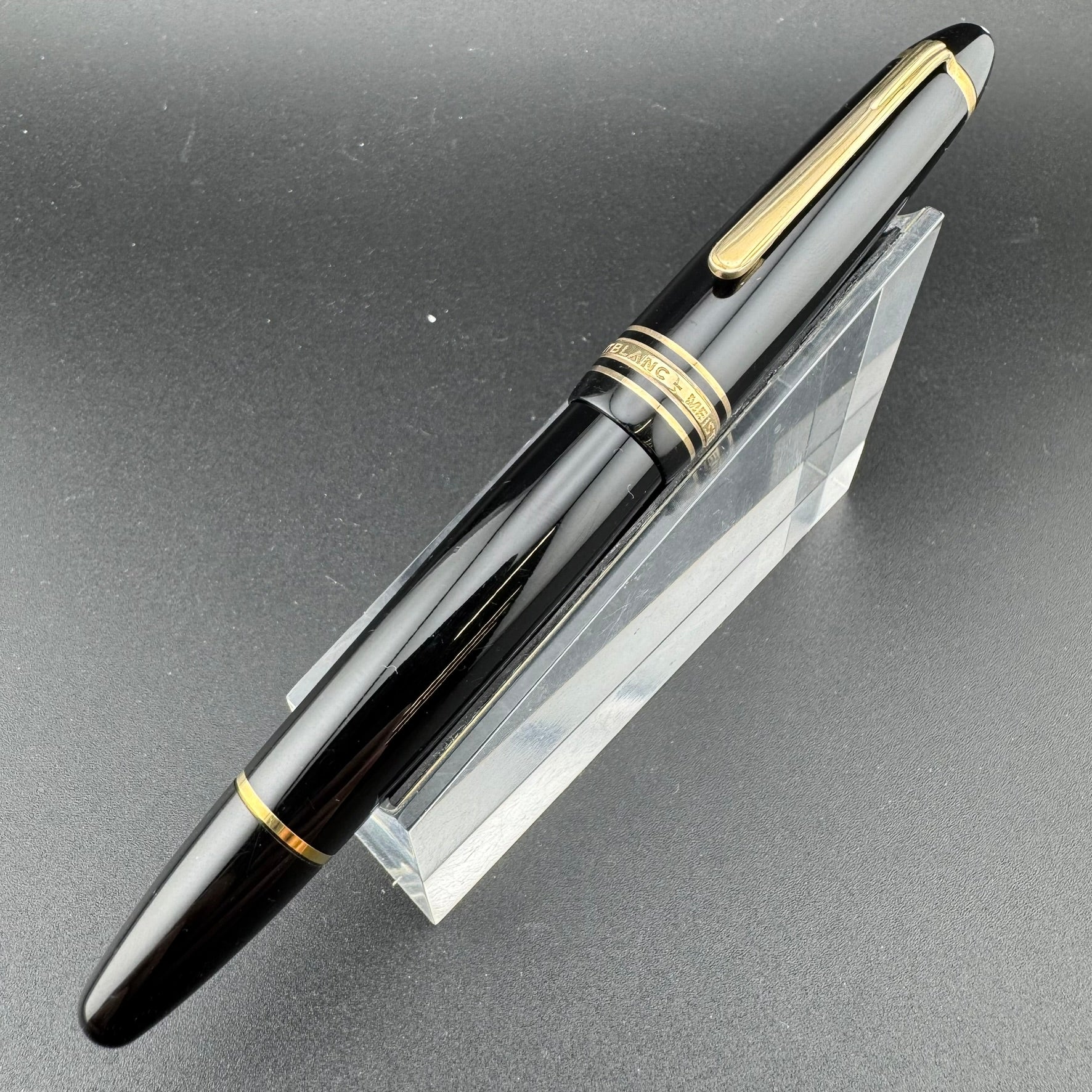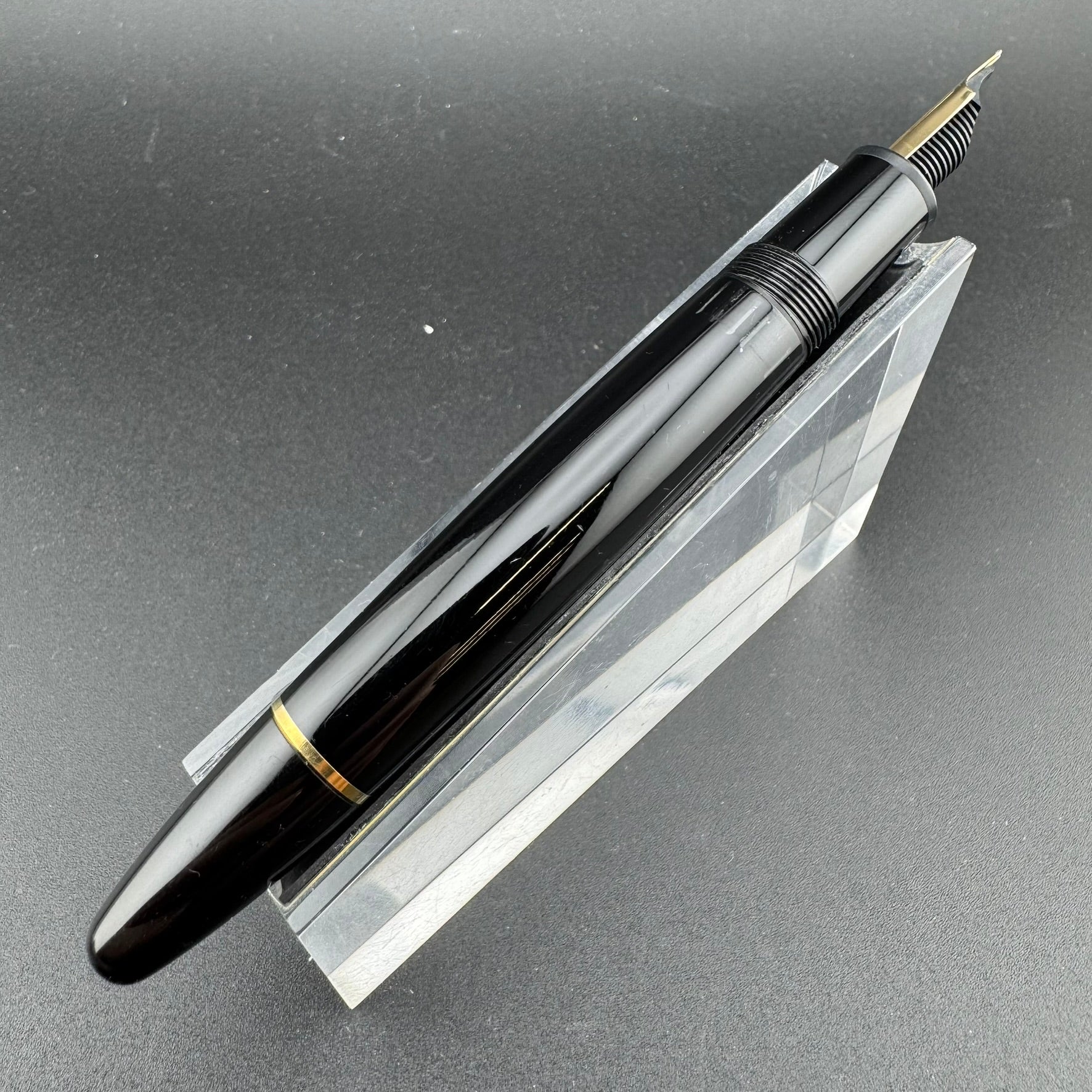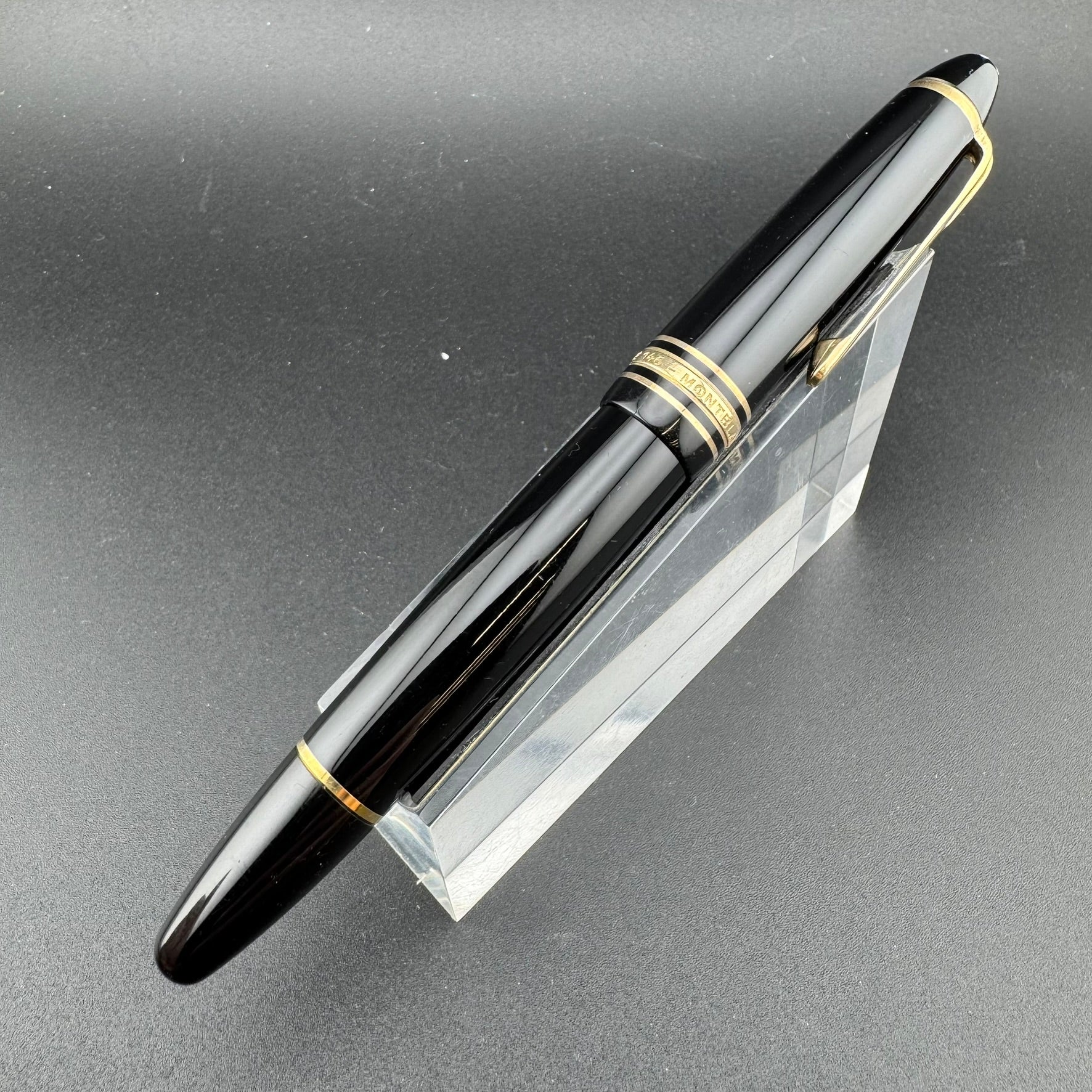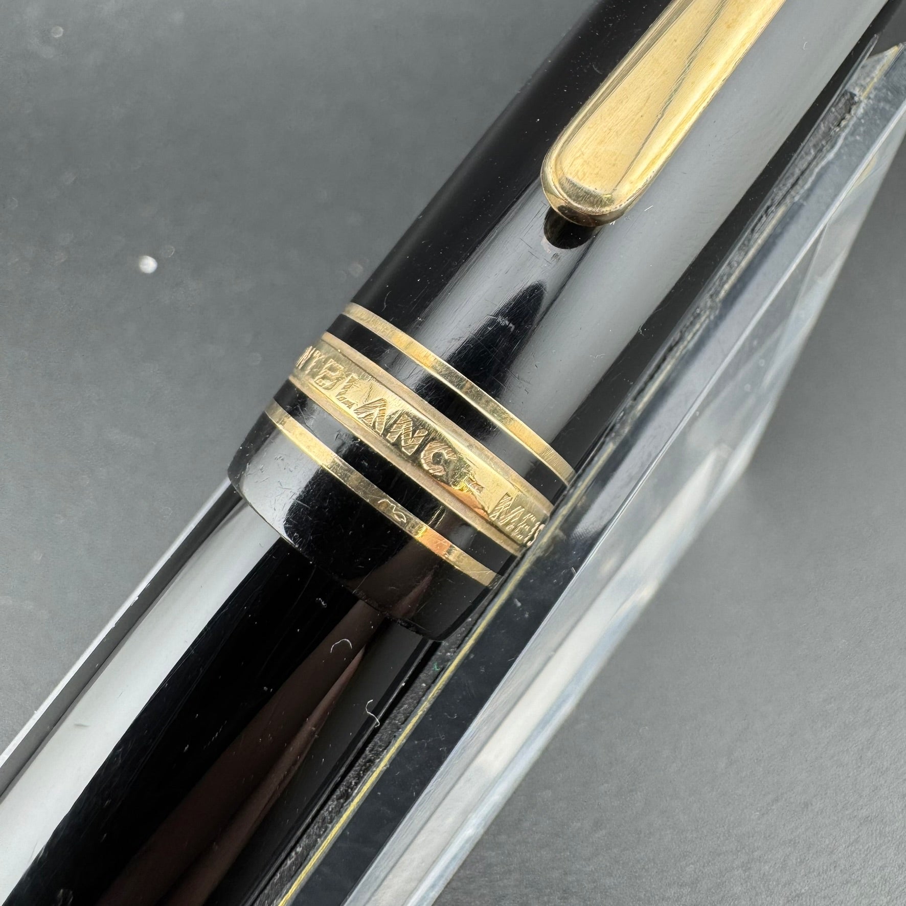 This pen has been serviced by our pen repair team here at G.C. Murphy. The nib unit has been sealed using Montblanc "Bubble Gum" sealant to prevent leaks and the piston unit has been lubricated to ensure proper filling action. Serviced pens come with a 90-Day Warranty against any workmanship defects.