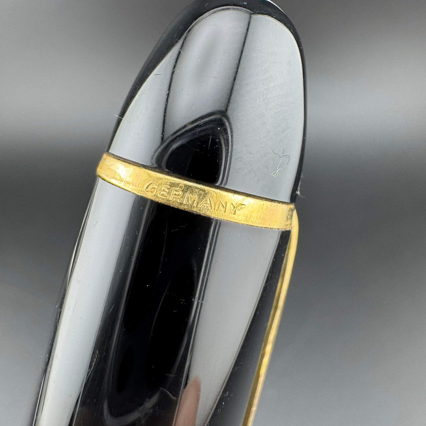 Montblanc 149 fountain pens can be dated by identifying a few key differences between the nibs and feeds. This pen was produced sometime between 1972 and 1975 due to the 14C Tri-Color nib and Solid Ebonite feed.