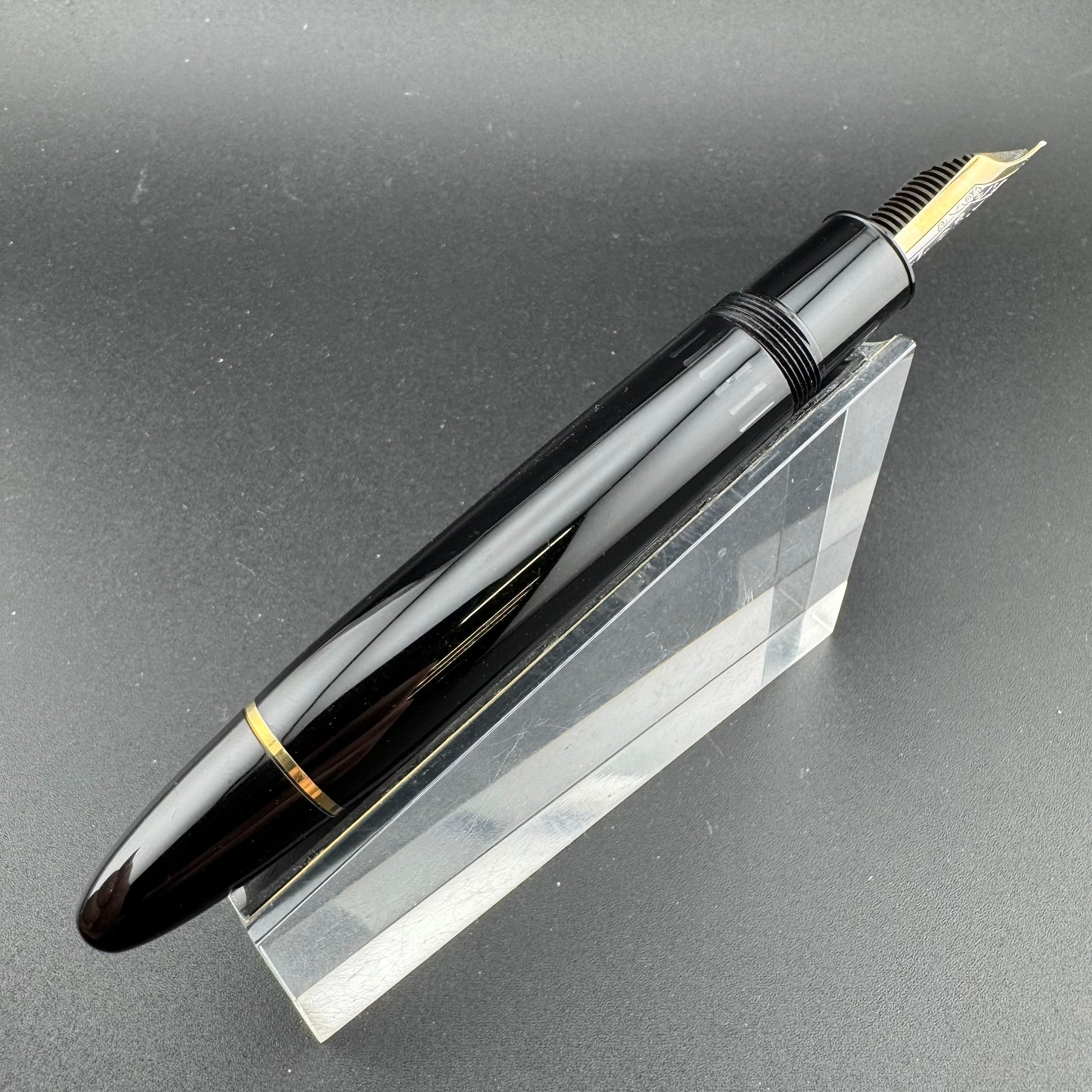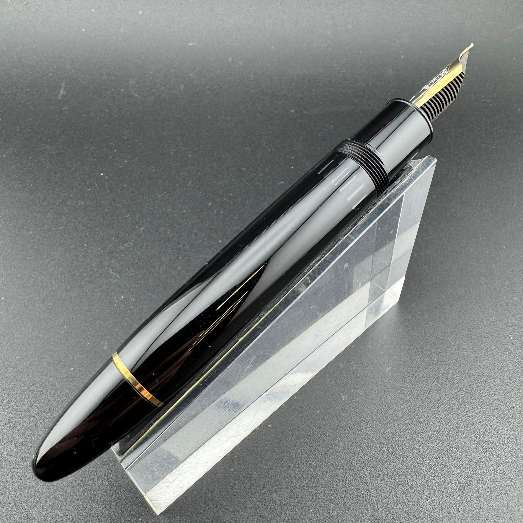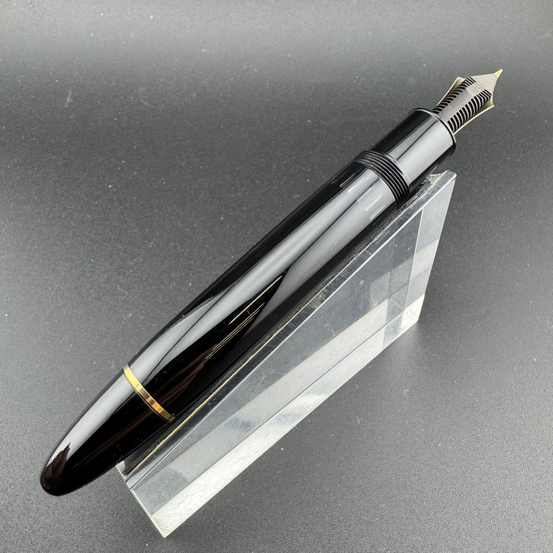 This pen has been serviced by our pen repair team here at G.C. Murphy. The nib unit has been sealed using 100% pure silicone grease to prevent leaks and the piston unit has been lubricated to ensure proper filling action. Serviced pens come with a 90-Day Warranty against any workmanship defects.