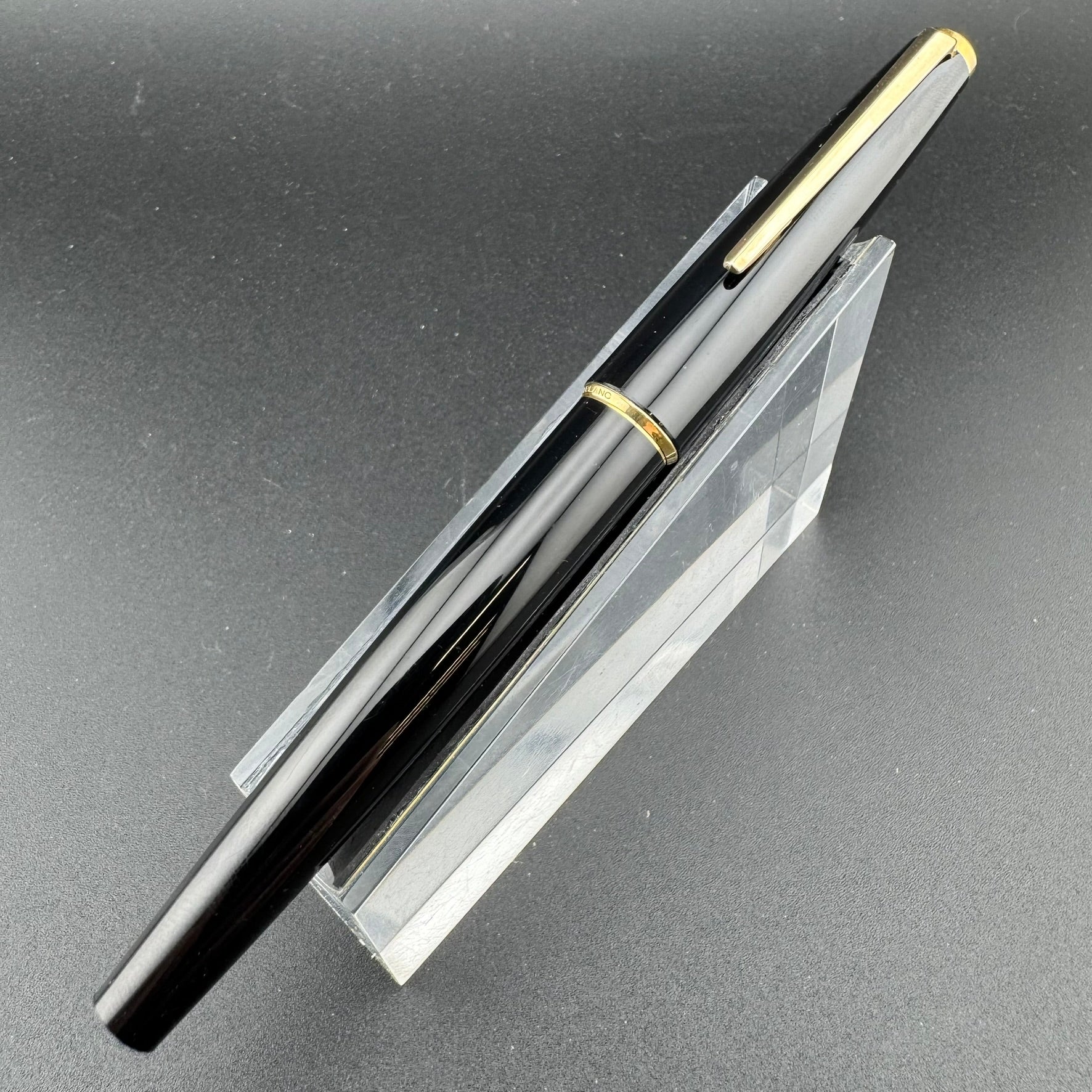 The No. 310 is in the Economy Range tier. The pen features a gold plated steel nib. The pen is in B, Good condition. Please note there is an engraving on the underside of the grip section from the previous owner.