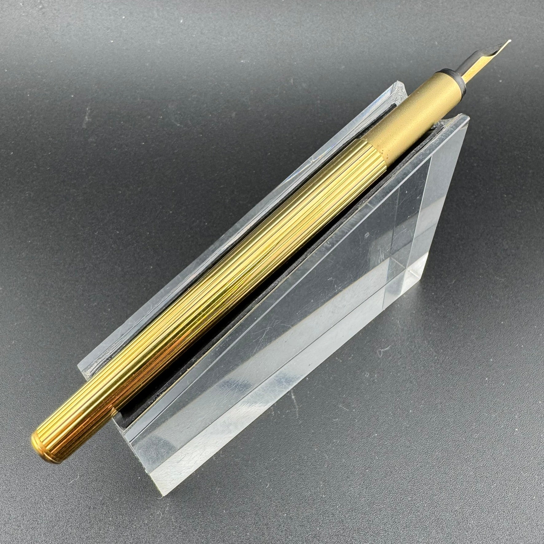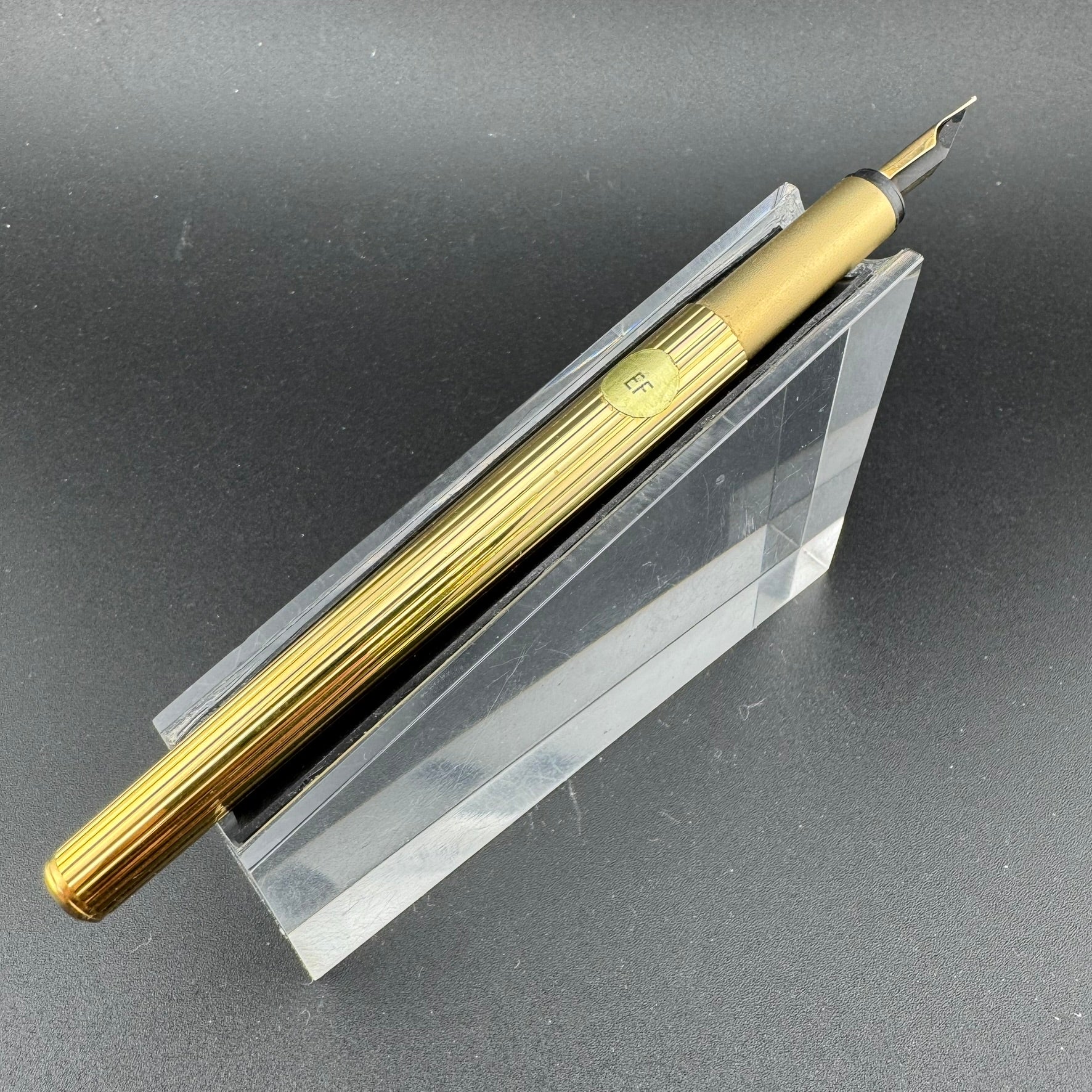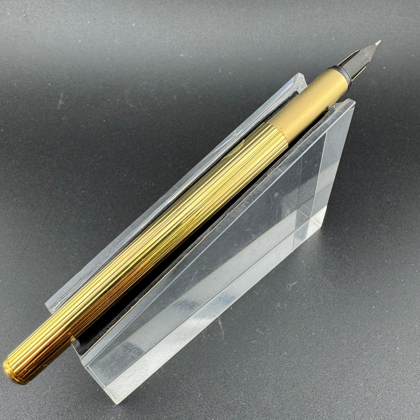 The first generation Noblesse was offered in a variety of finishes including chrome pinstriped, gold pinstriped, and brushed stainless steel. The 1st generation pens were equipped with fantastic ebonite feeds and 14K gold nibs ranging the standard size options.