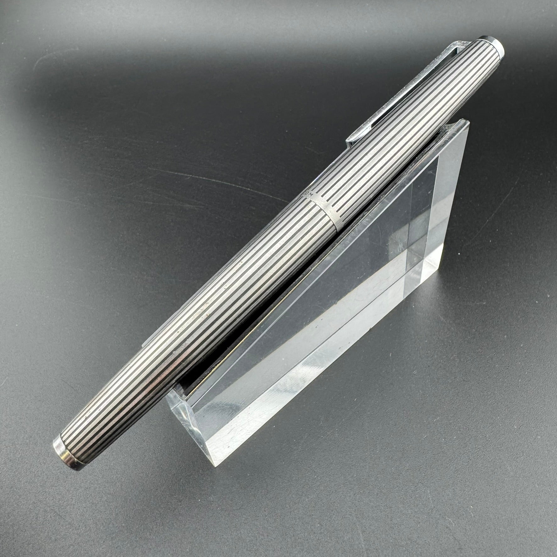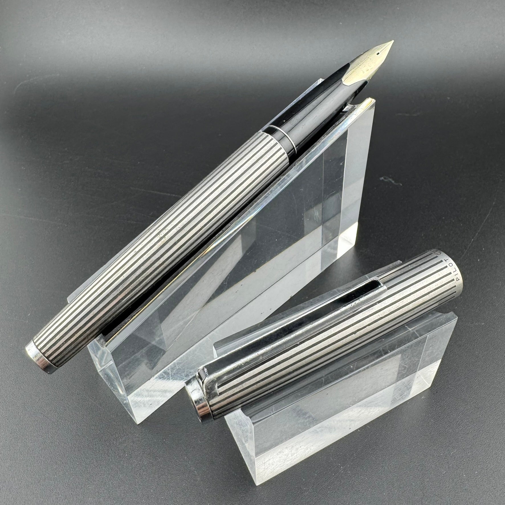 The Pilot Custom K series of pens, released in 1971, consists of three pens, each created to look different but with the same intent. The pens can be found as a stainless steel pen with black chrome stripes running along its body down to the nib (K-500SS), a sterling silver pen with a checkered body (K-1000SS), and a pen created with gorgeous wood from painted maple trees (K-500KS). These different styles of pens were created to give a sense of individuality to each person who bought one, and they continue to live up to their duty today. The Custom series grew to be one of the most popular Pilot fountain pens and has been produced in a variety of styles and finishes. It is these three pens that started the line. The black resin K-500RS was introduced to the market in 1972.
