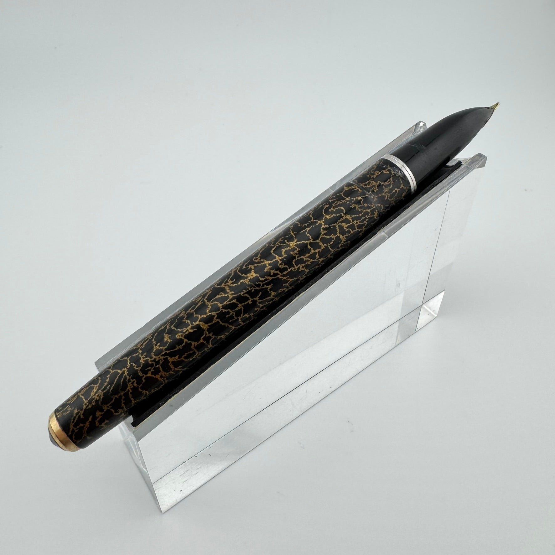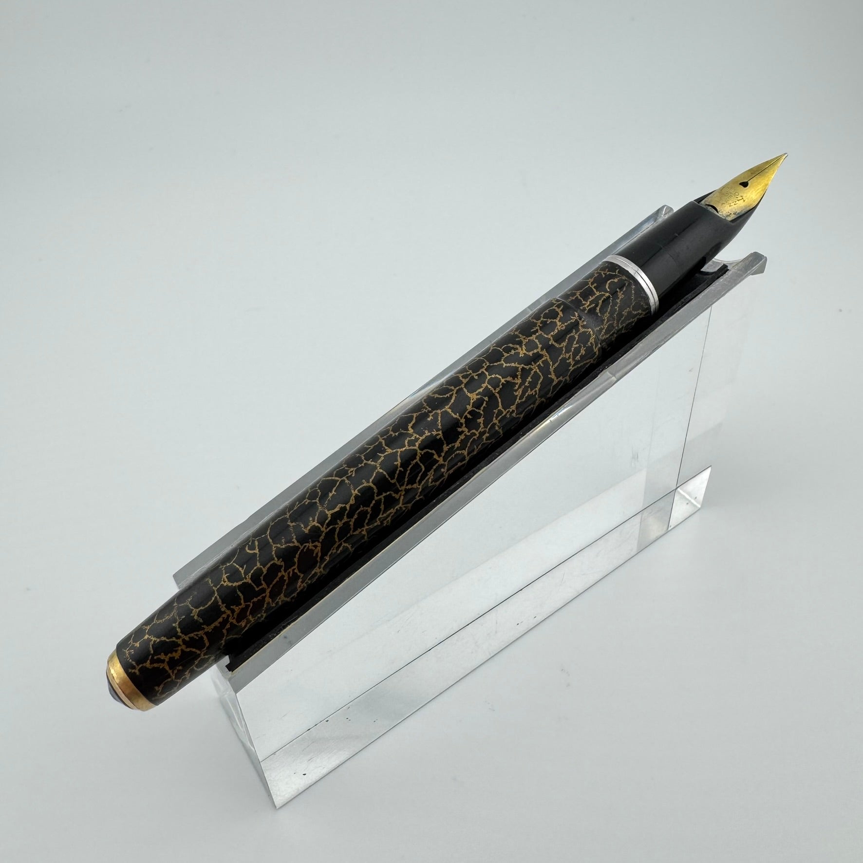 Vintage Pilot Super 200 Maki-e Fountain Pen. This pen depicts the "Dragonfly Wing" maki-e pattern. This pen is in good cosmetic condition, but has not been restored. The switch lever mechanism is functional, but the pen will need a new ink sac in order to function properly.