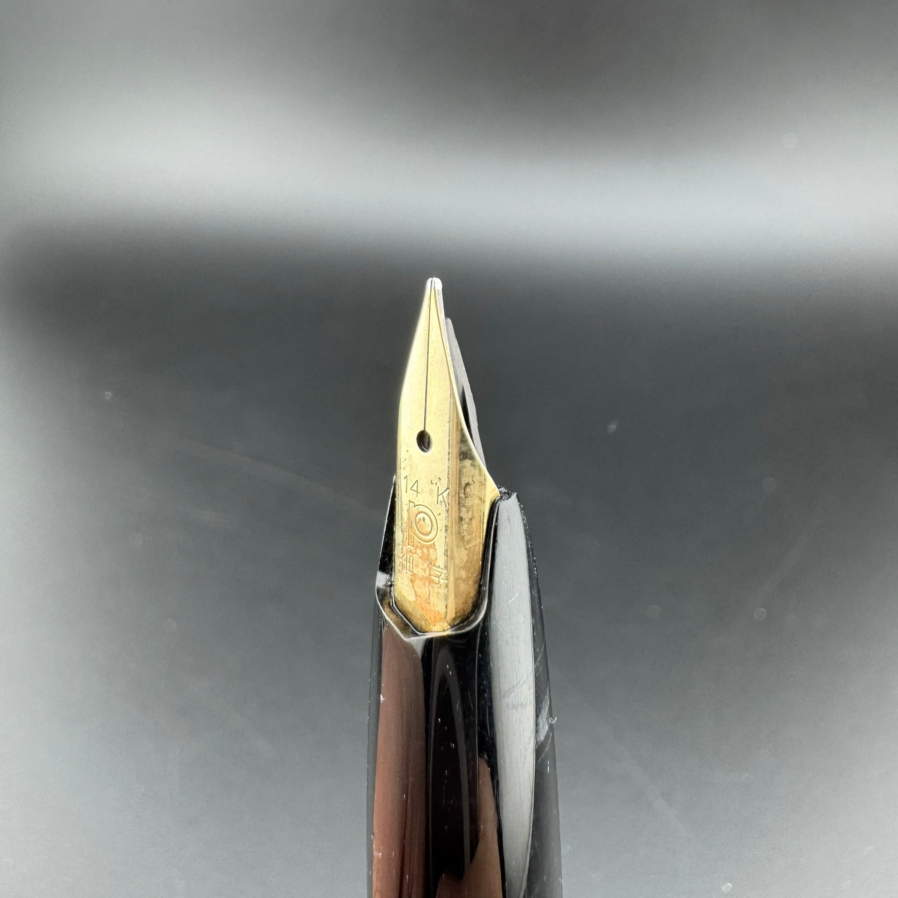 Platinum nibs are usually made out of 18K gold, but can sometimes be found with 14K, 22K, and even 23K gold in pens produced at the height of the karat wars. They are marked with Chinese symbols known as "Kanji" which indicate the nib size. By translating these symbols, we can properly determine the nib size of each pen.