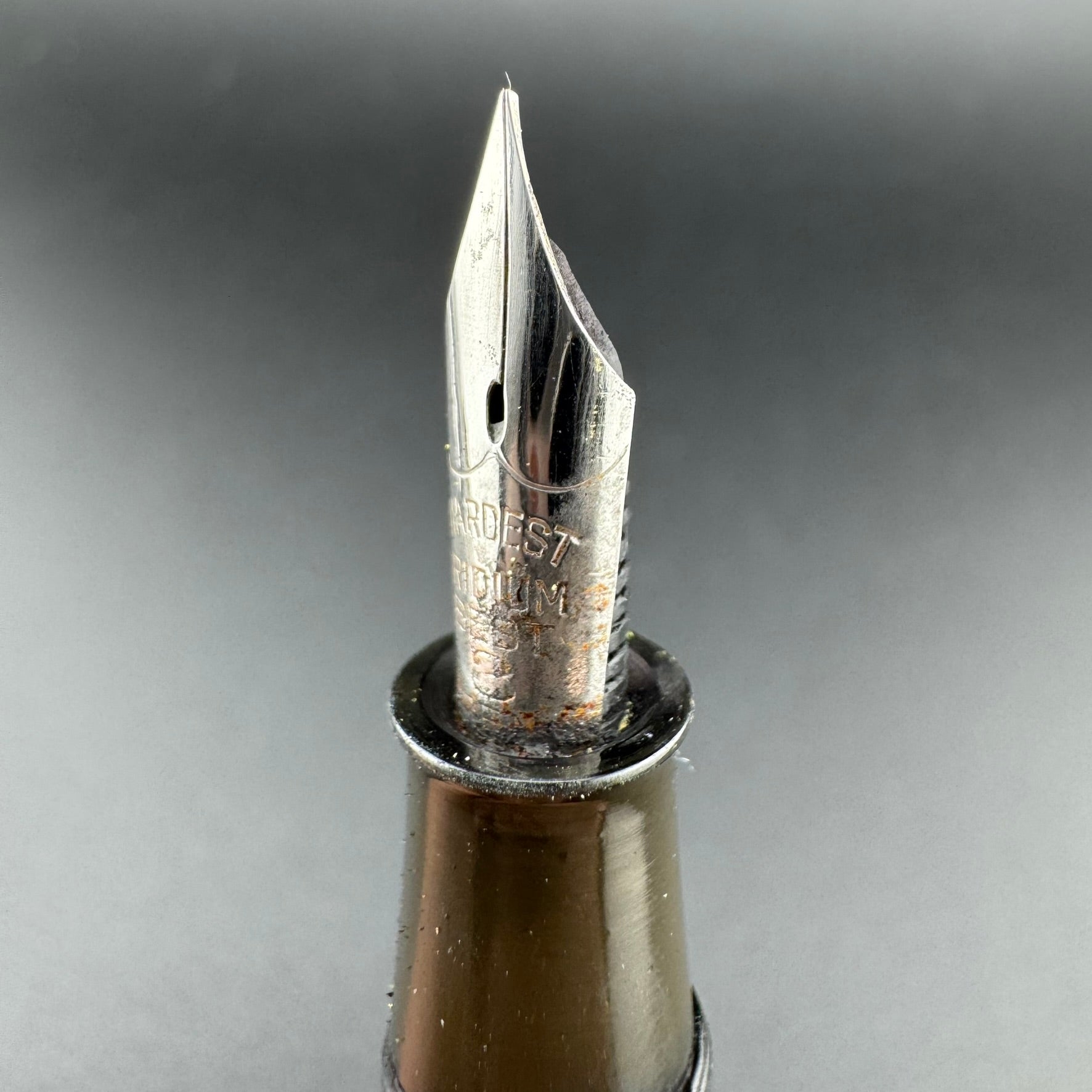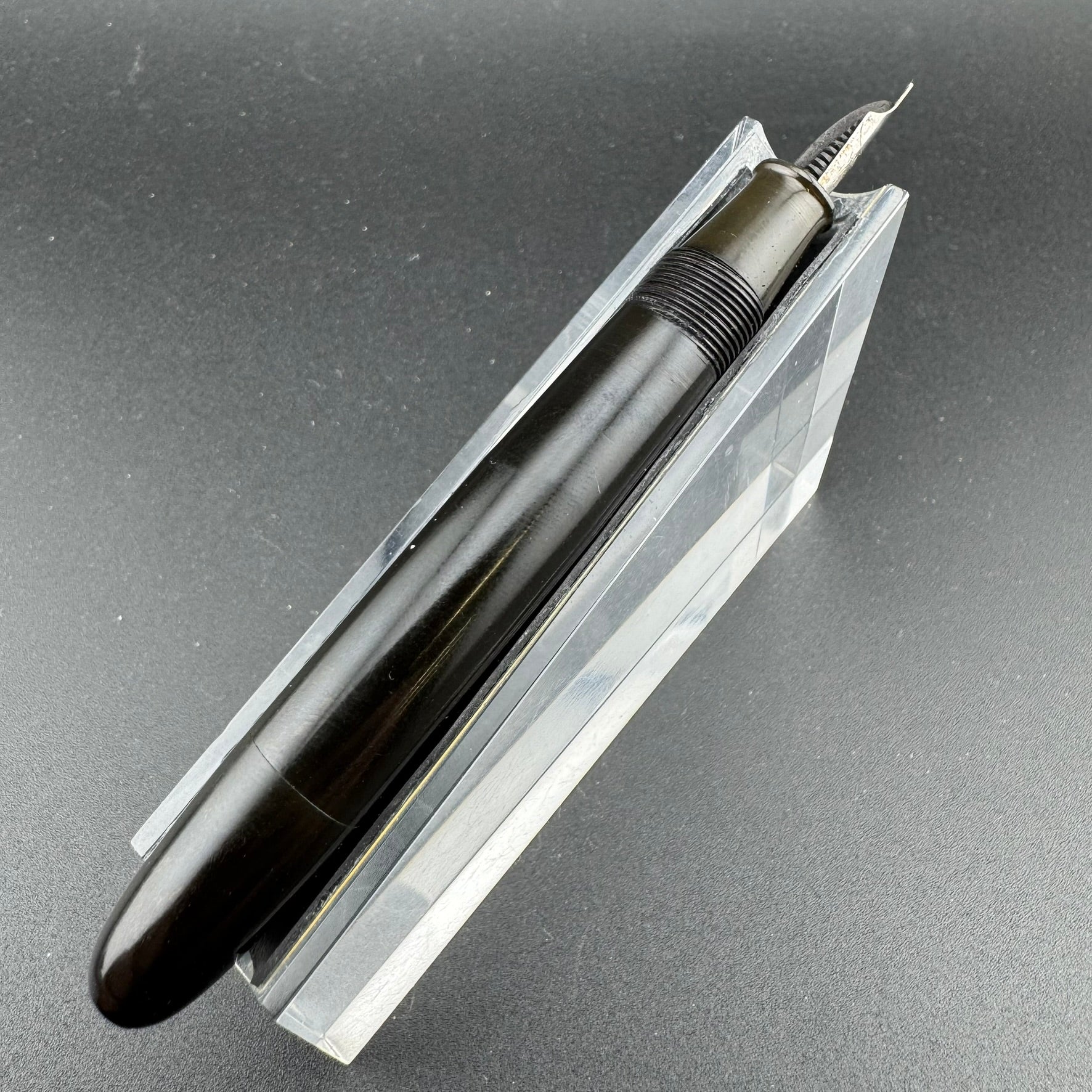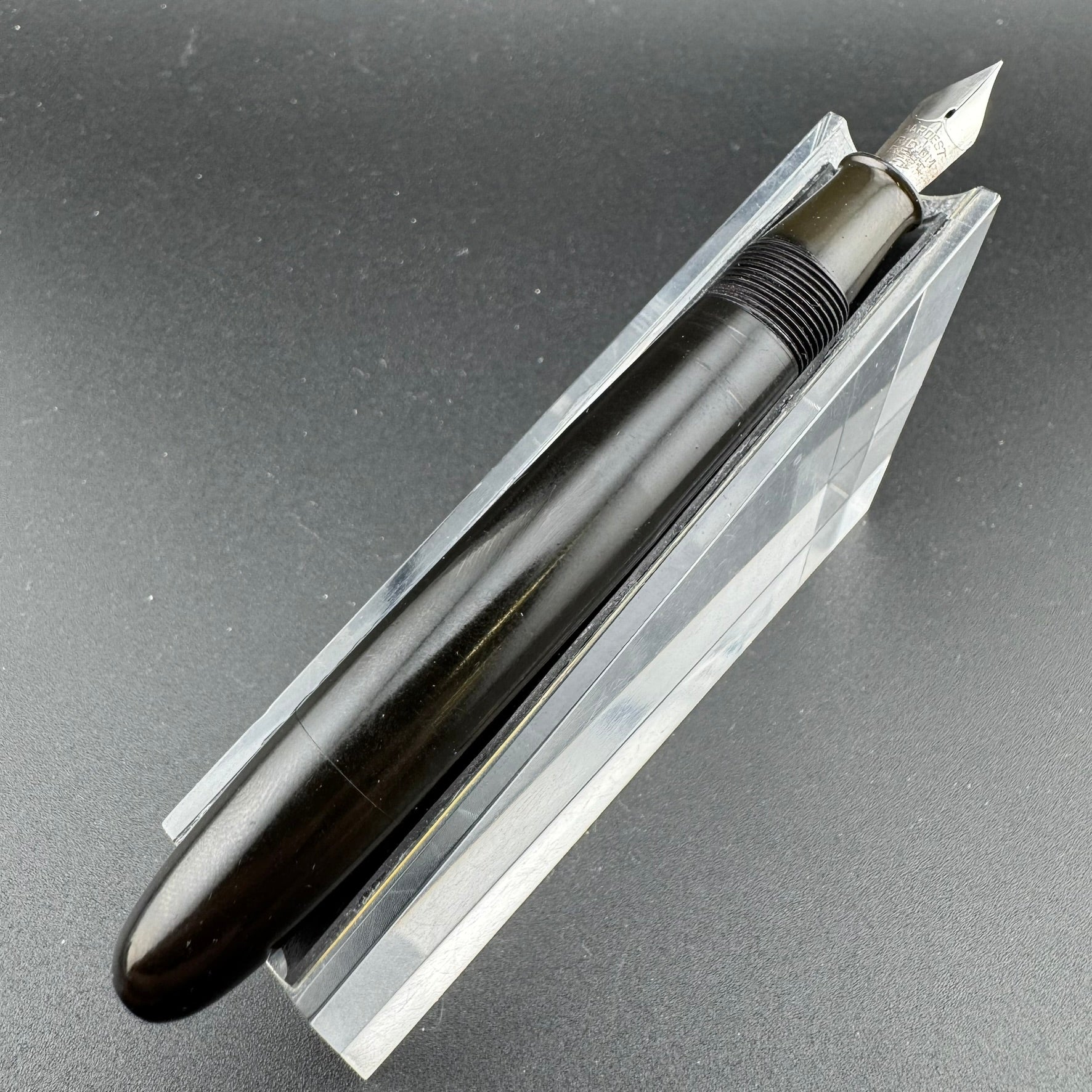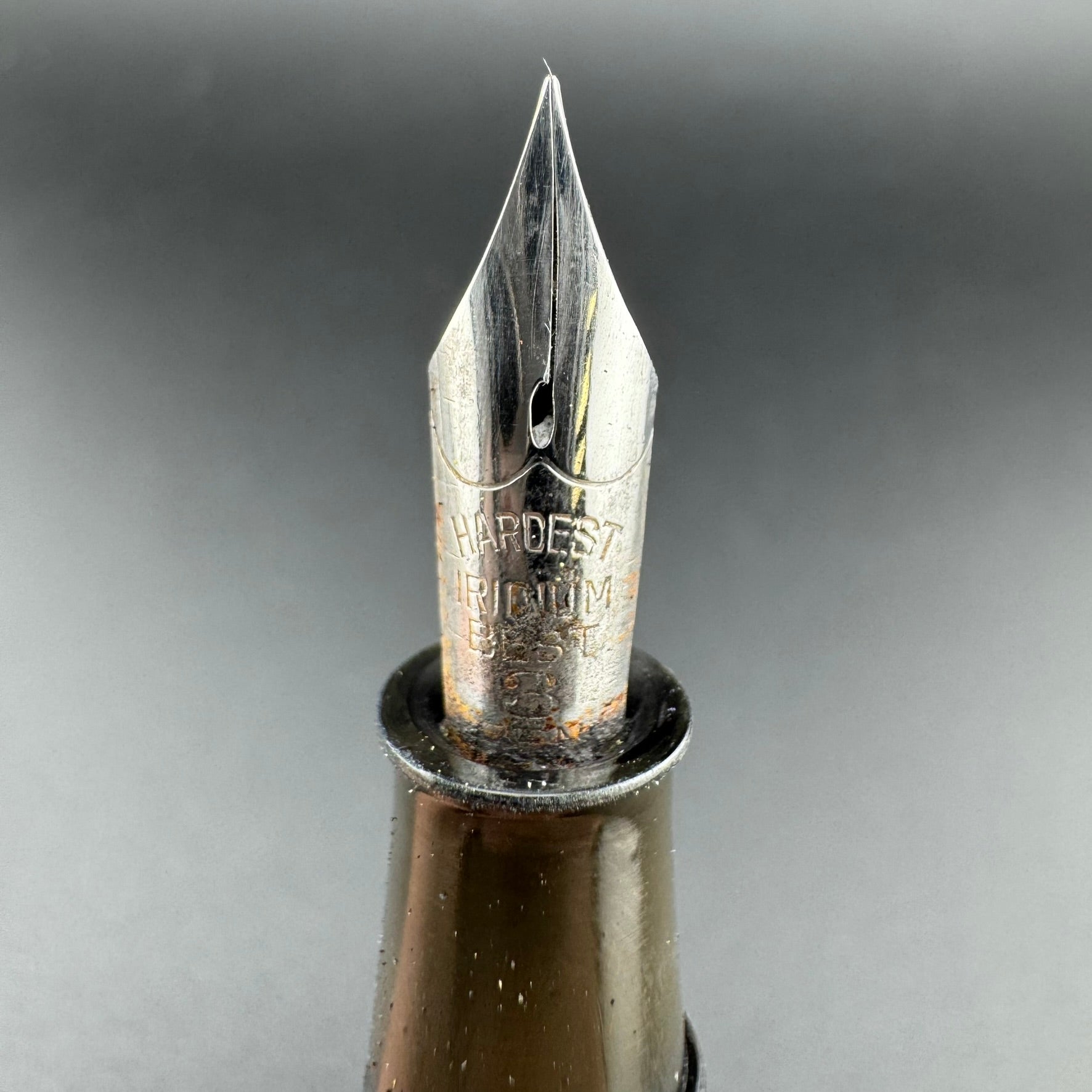 This pen has had the worn out, original cork shutoff valve seal replaced with o-rings. Providing a great alternative to prevent leaks near the back of the pen. 90 day warranty on service work.