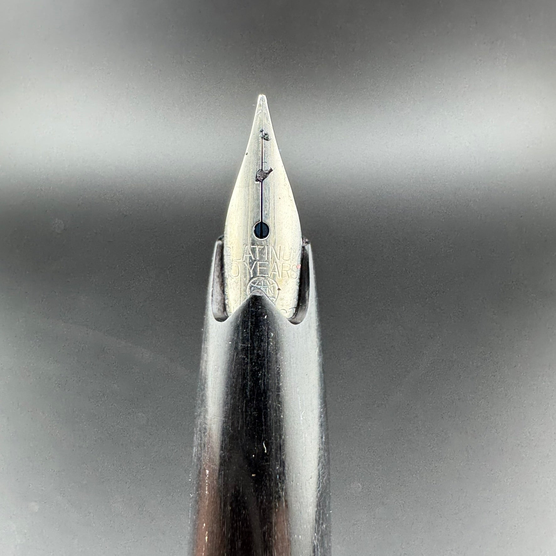 Platinum nibs are usually made out of 18K gold, but can sometimes be found with 14K, 22K, and even 23K gold in pens produced at the height of the karat wars. They are marked with Chinese symbols known as "Kanji" which indicate the nib size. By translating these symbols, we can properly determine the nib size of each pen.