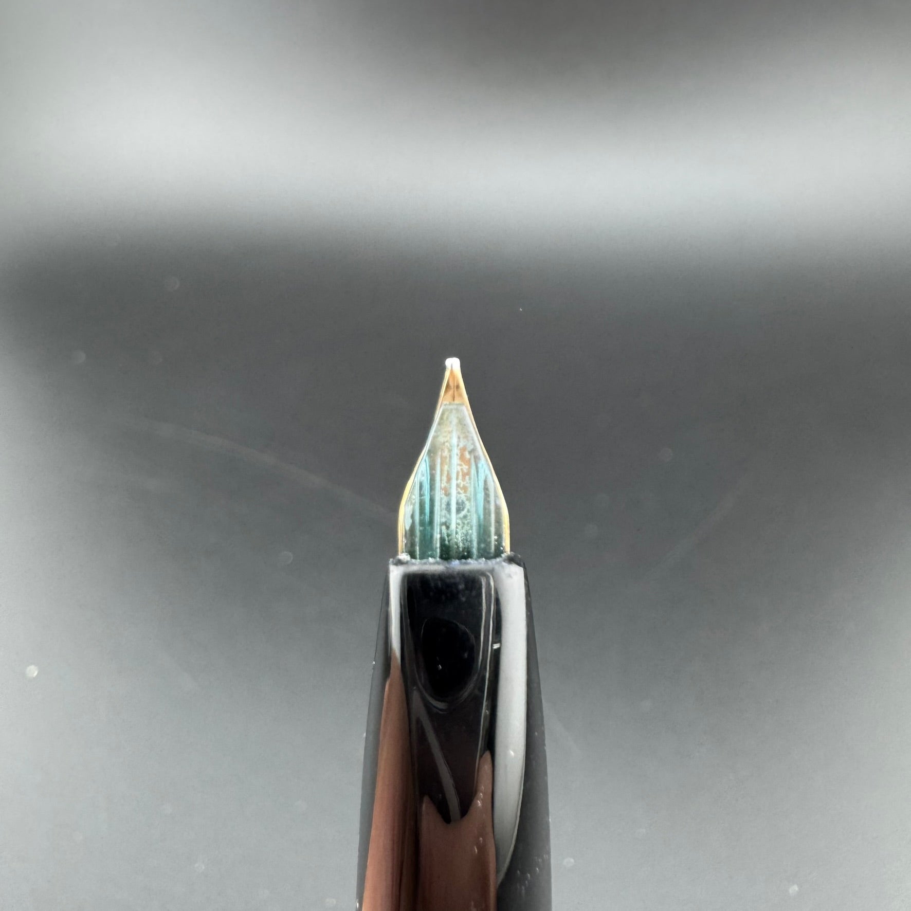 Platinum nibs are usually made out of 18K gold, but can sometimes be found with 14K, 22K, and even 23K gold in pens produced at the height of the karat wars. They are marked with Chinese symbols known as "Kanji" which indicate the nib size. By translating these symbols, we can properly determine the nib size of each pen.