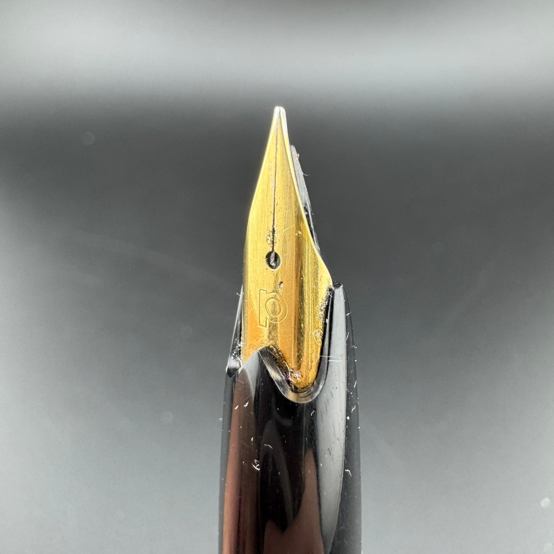 Platinum nibs are usually made out of 18K gold, but can sometimes be found with 14K, 22K, and even 23K gold in pens produced at the height of the karat wars. They are marked with Chinese symbols known as "Kanji" which indicate the nib size. By translating these symbols, we can properly determine the nib size of each pen.