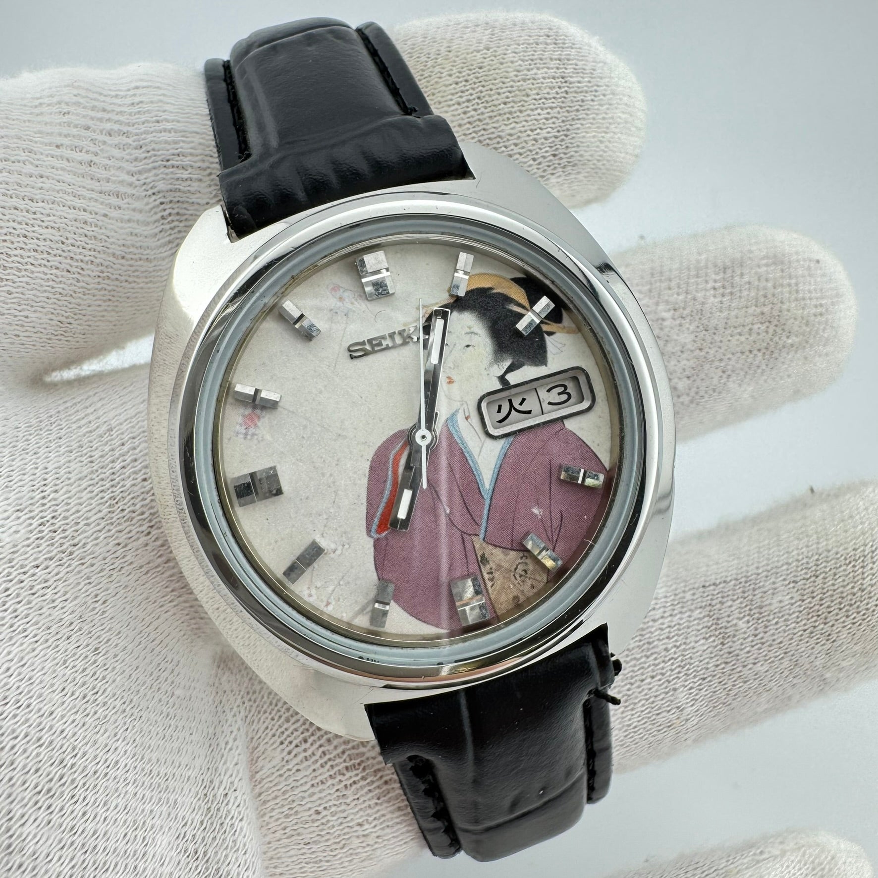 Pre-owned Seiko Actus 5 Ukiyo-e Dial Watch. Reference 7019-7350. Overall, this watch is in B, Good condition.