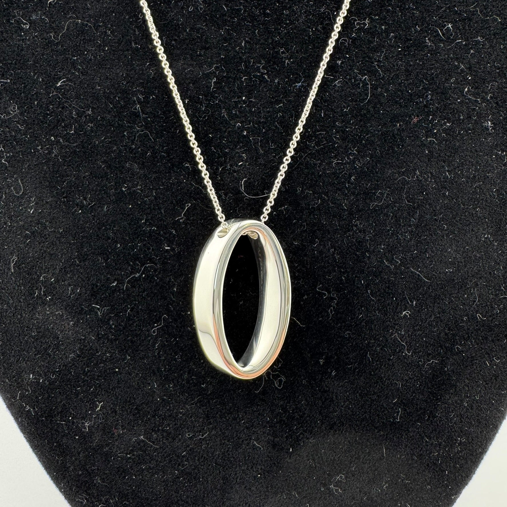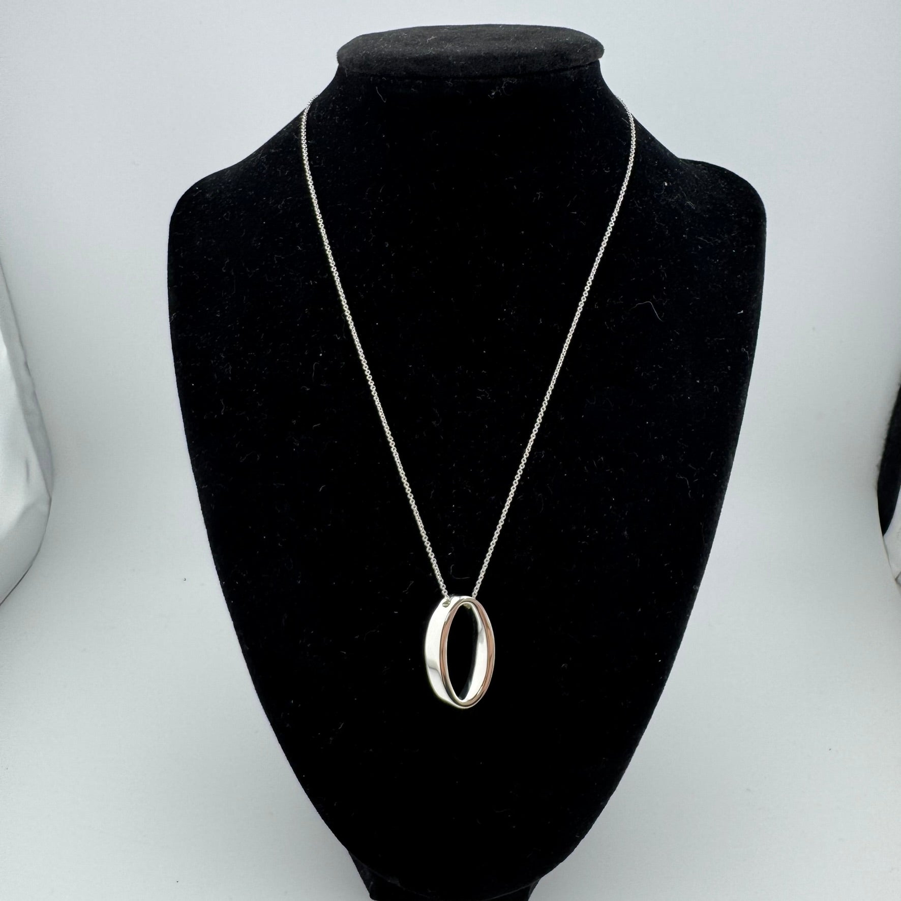 Pre-owned Tiffany & Co Geometric Oval Sterling Silver Pendant Necklace. This necklace features 925 sterling silver construction and a modern geometric design. Overall, this piece is in A, Excellent Condition.
