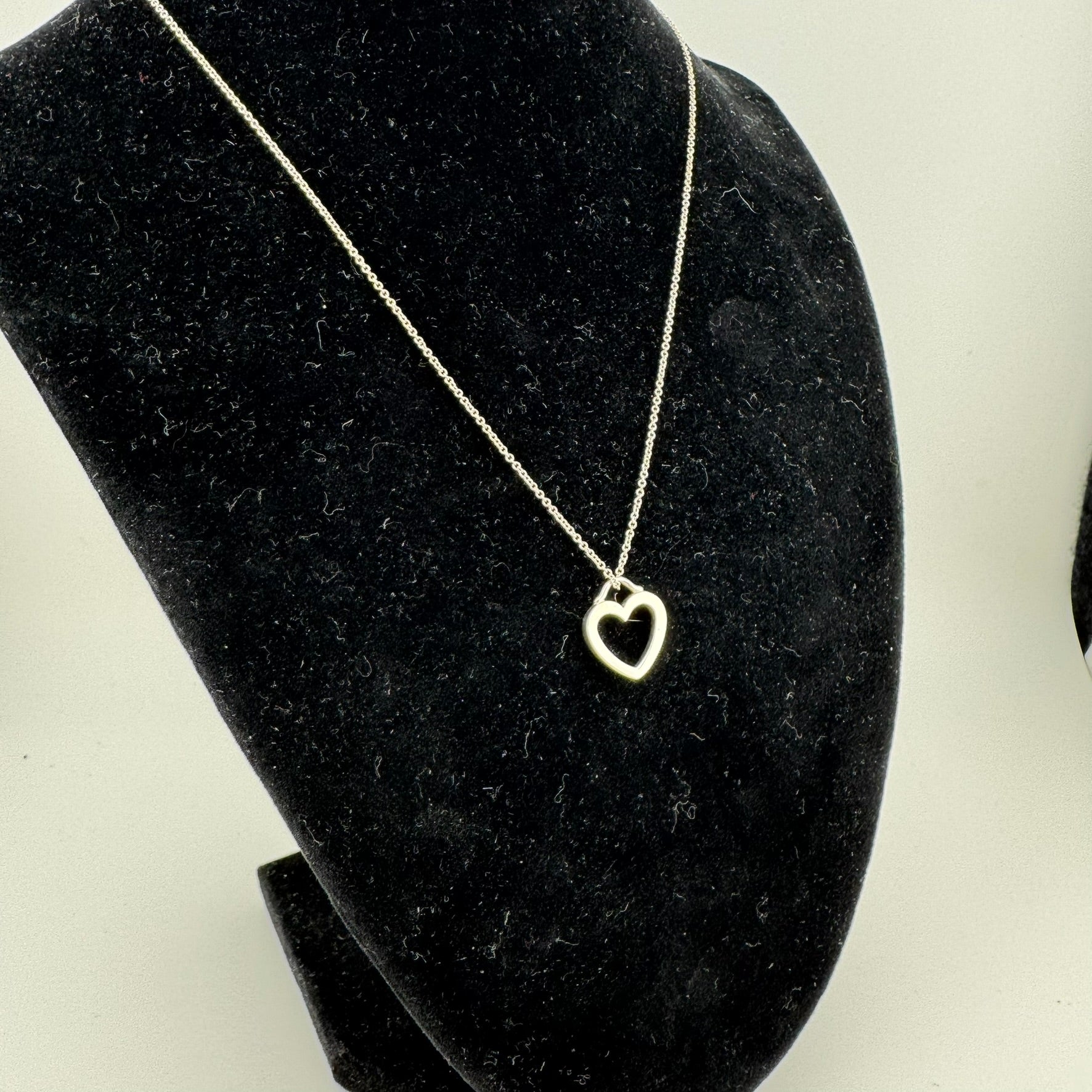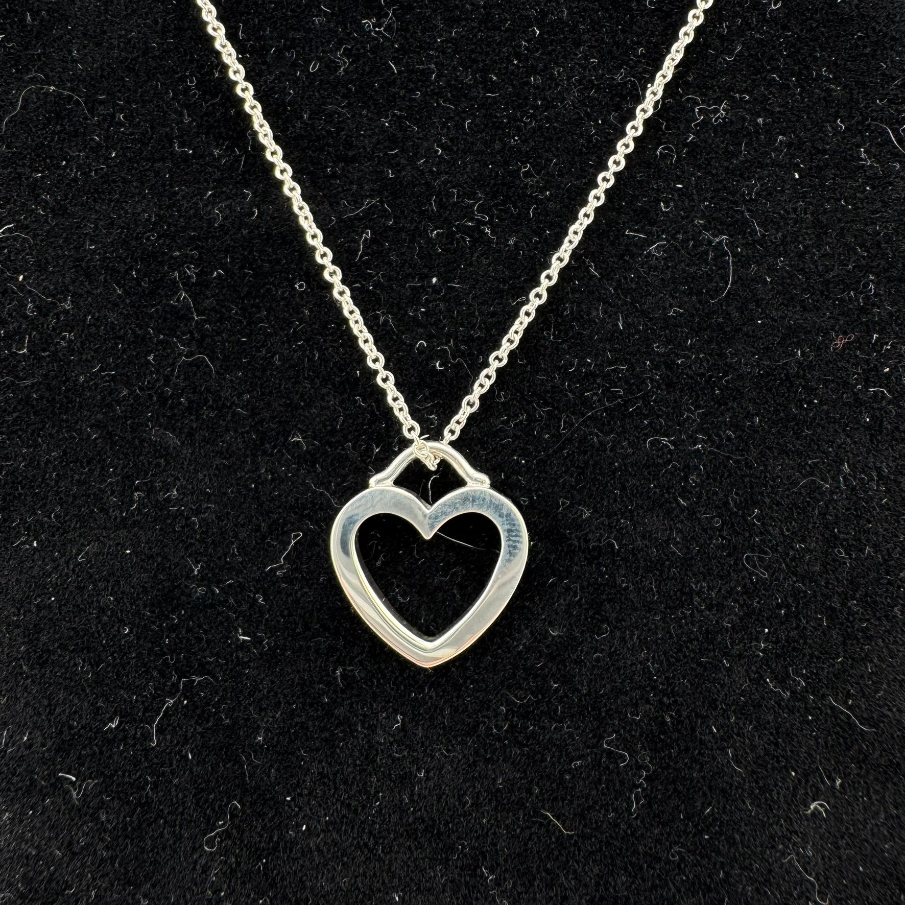 Pre-owned Tiffany & Co Sentimental Heart Necklace. This necklace features 925 sterling silver construction and a beautiful heart theme design. Overall, this piece is in A, Excellent Condition.