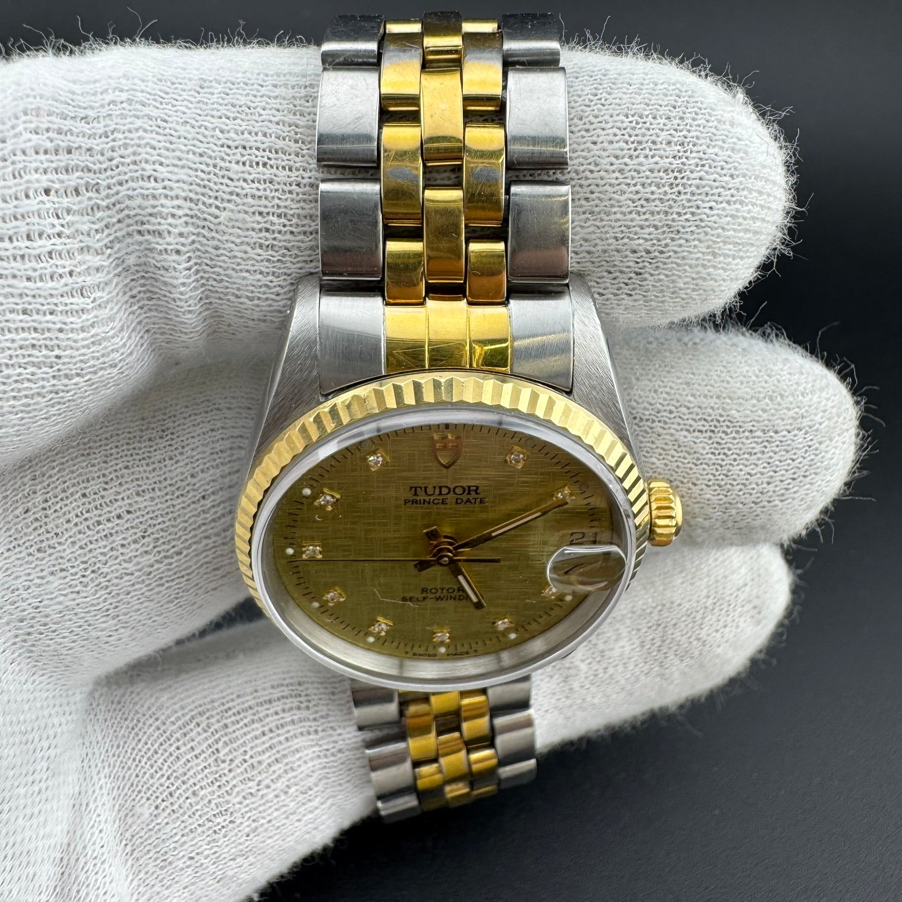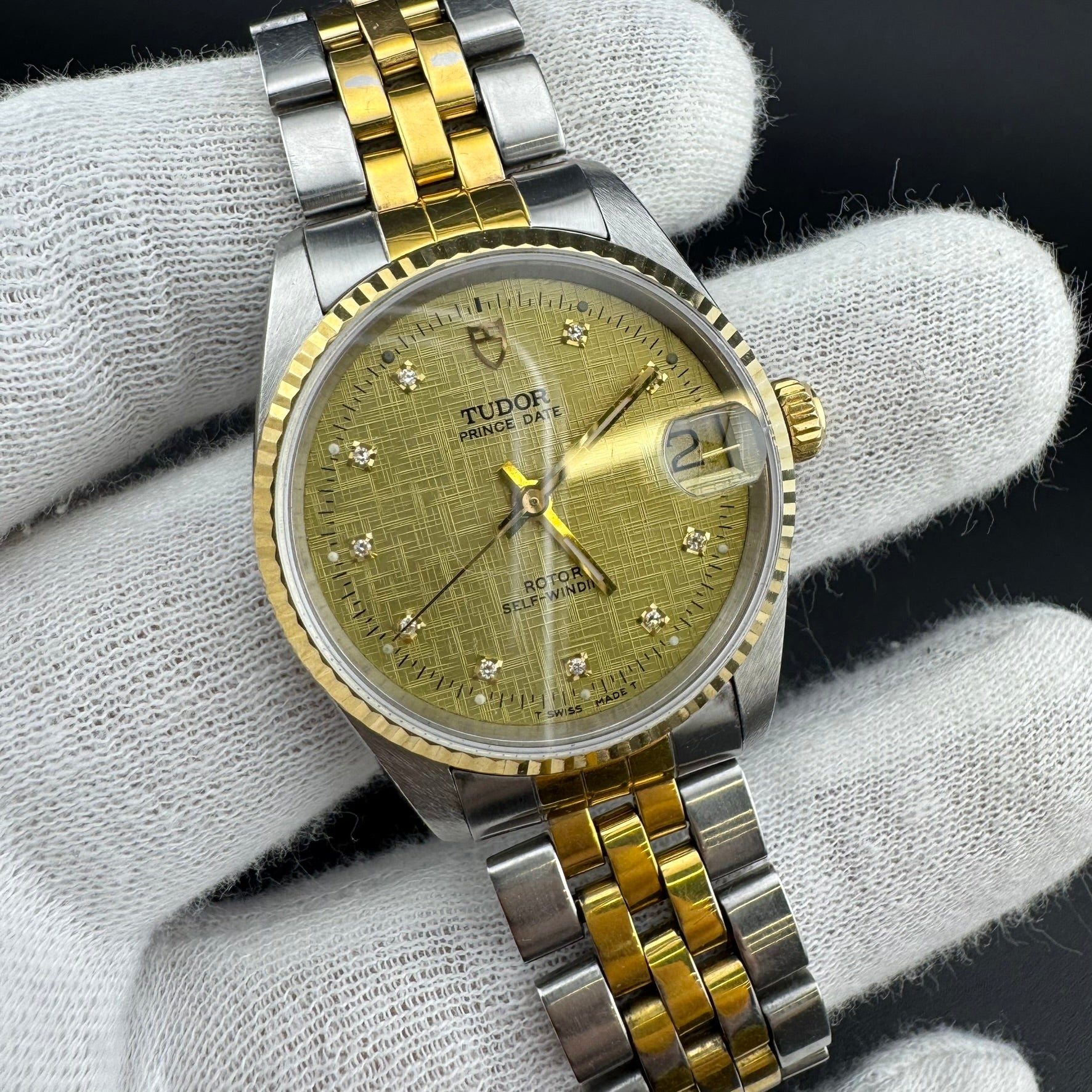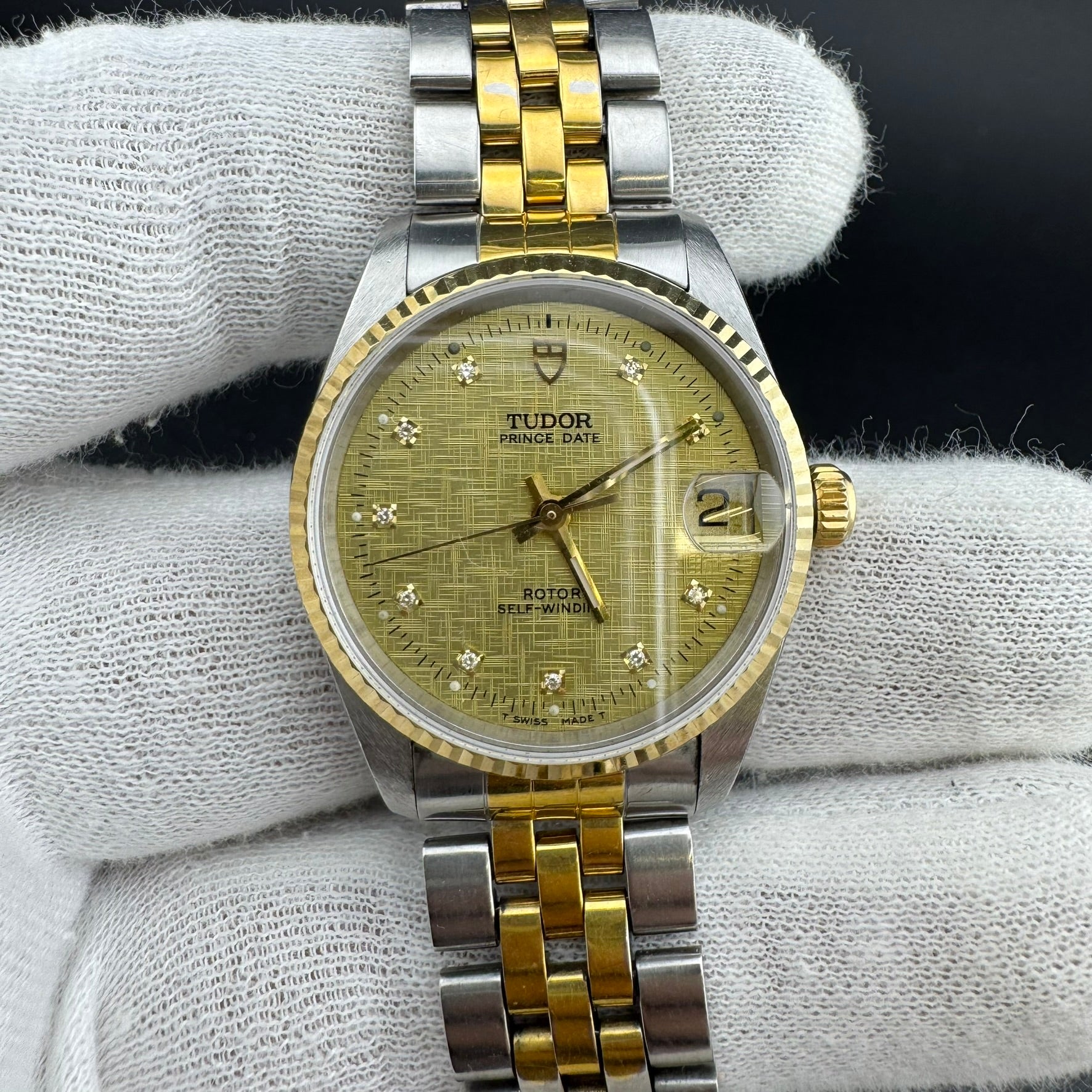 TUDOR Prince Date REF 72033 Two-Tone 32mm Diamond Linen Dial Watch