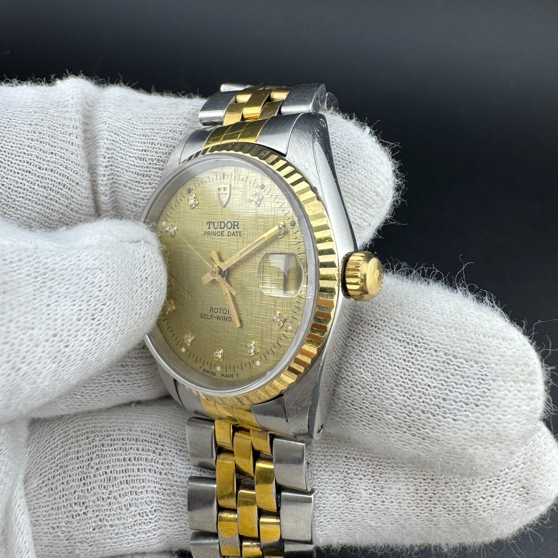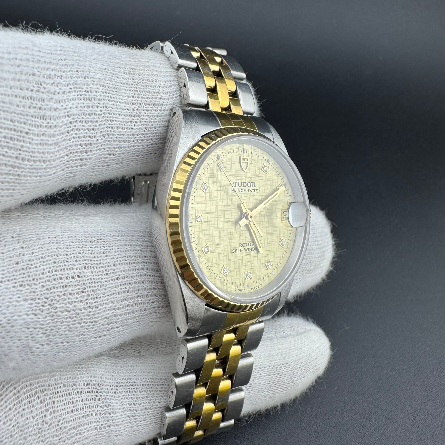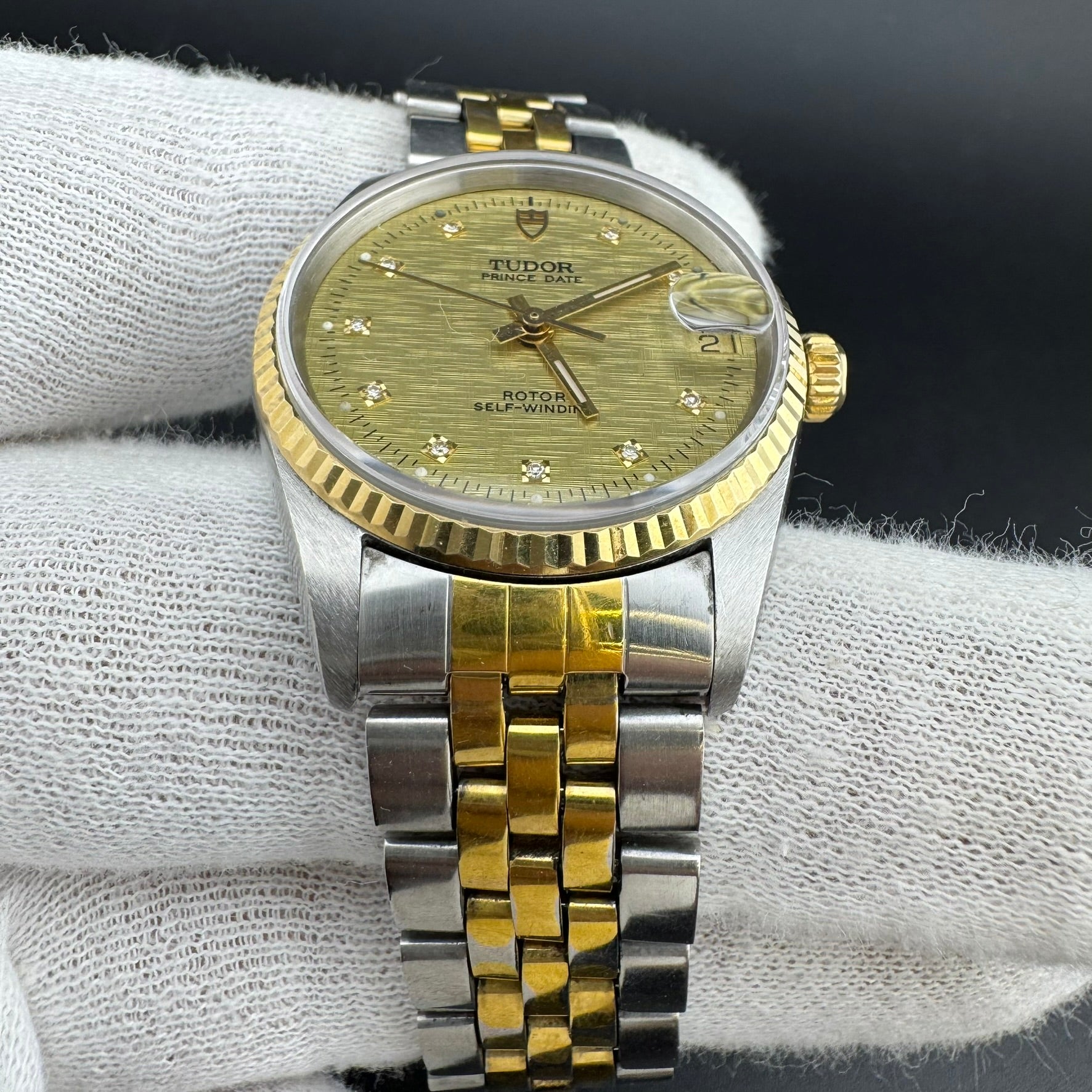 TUDOR Prince Date REF 72033 Two-Tone 32mm Diamond Linen Dial Watch