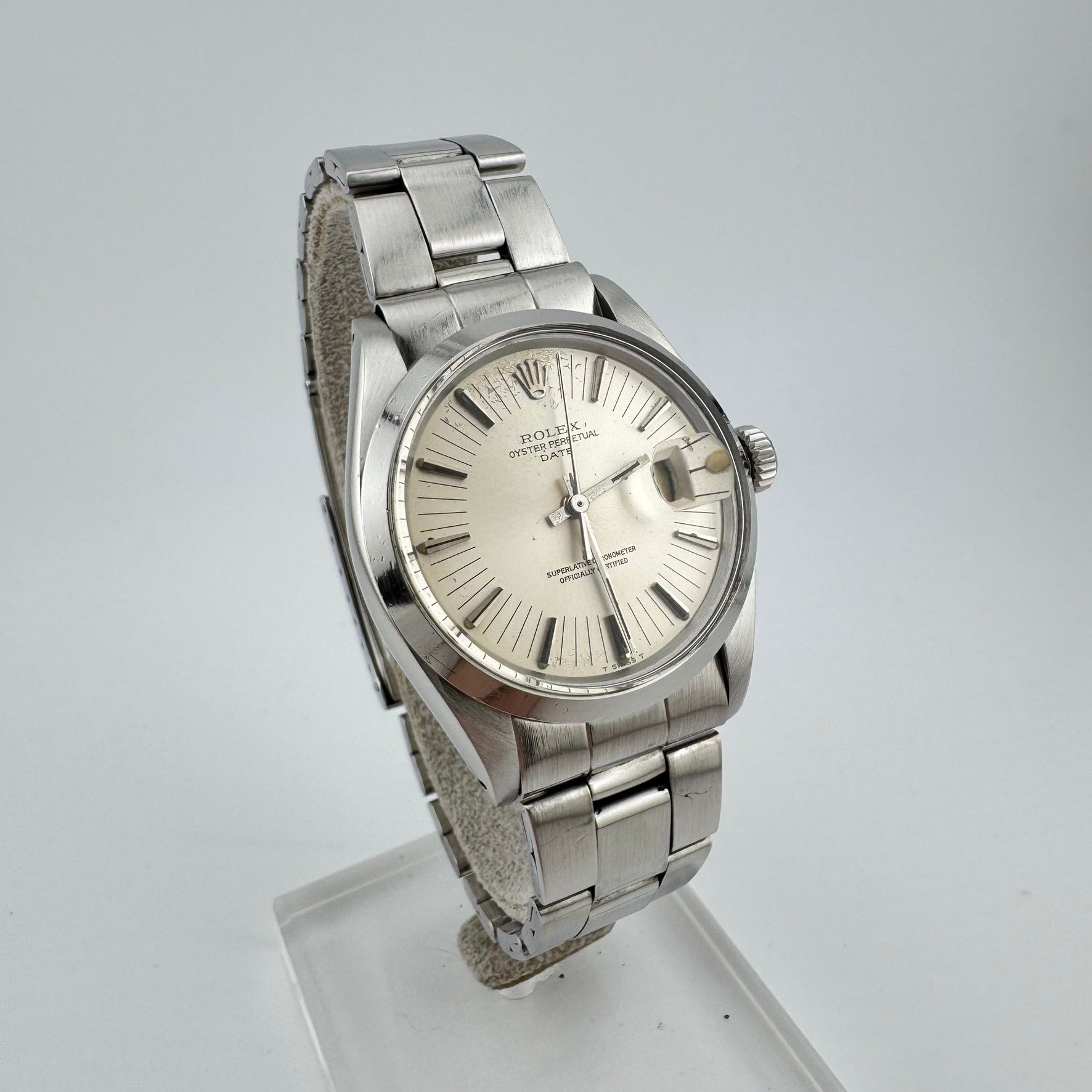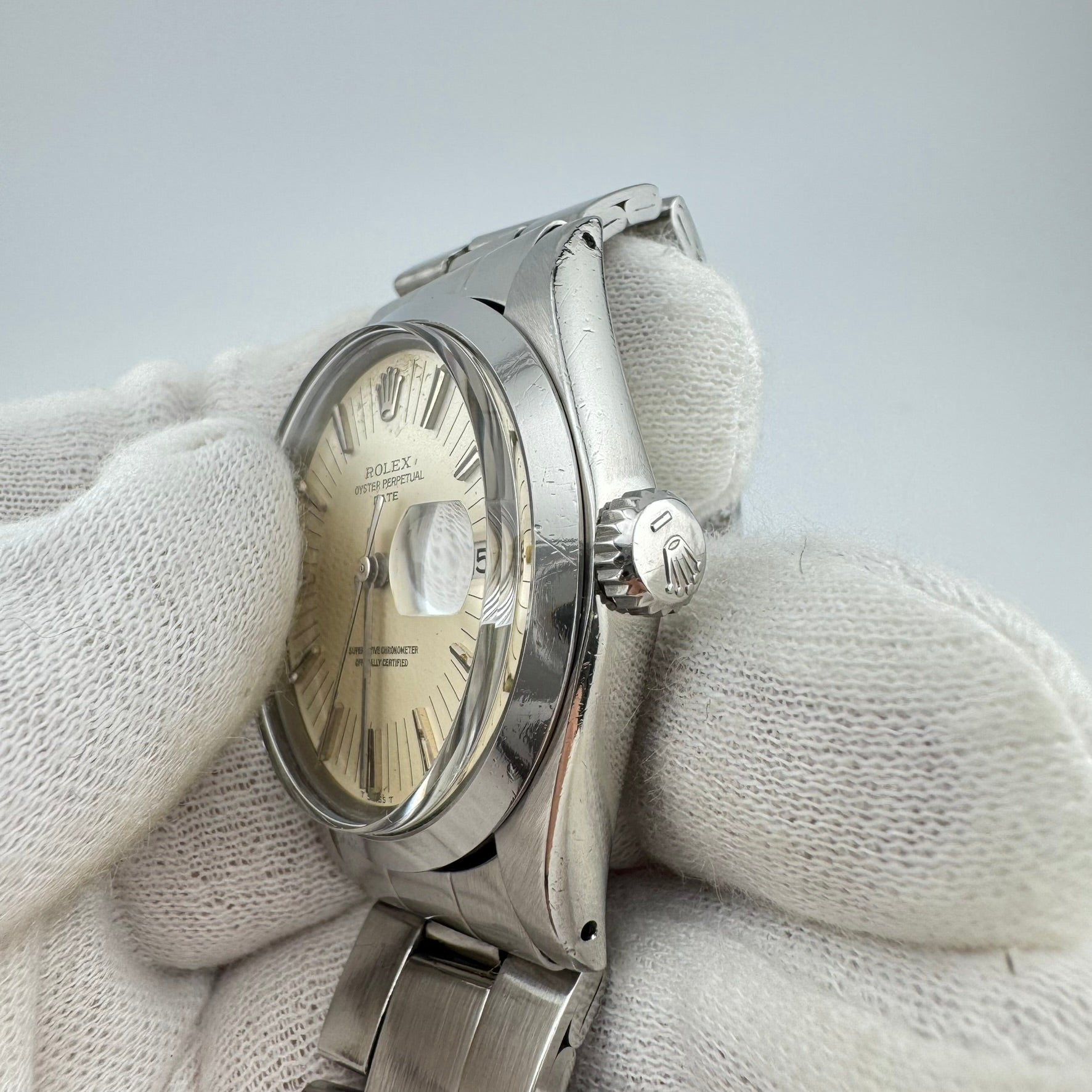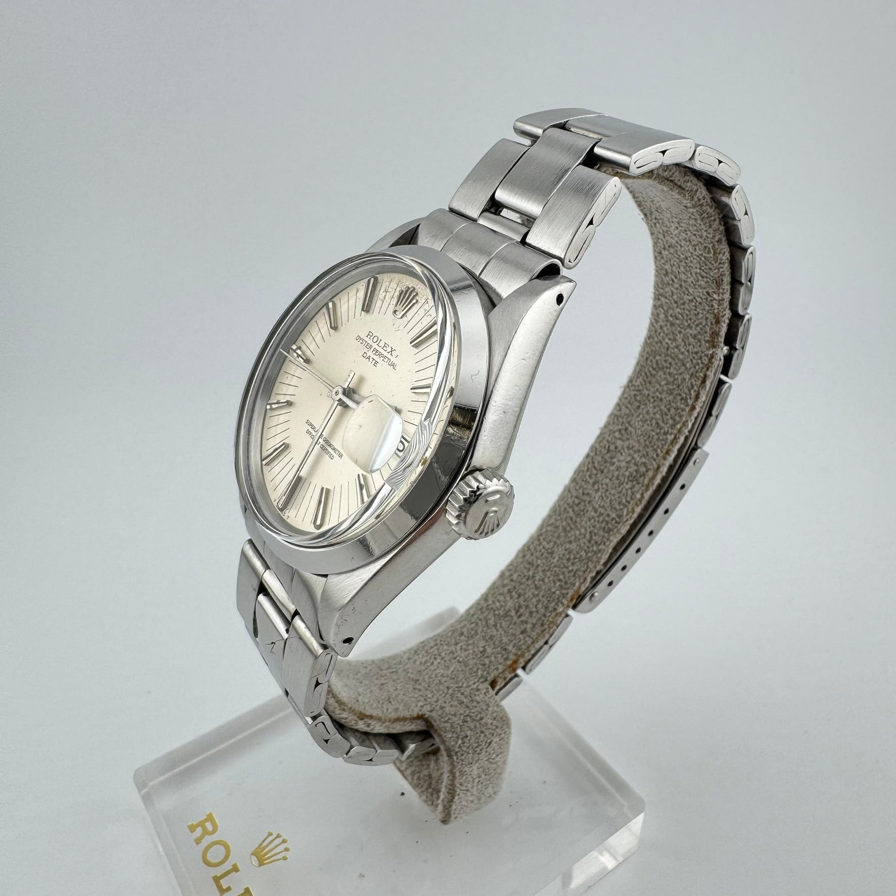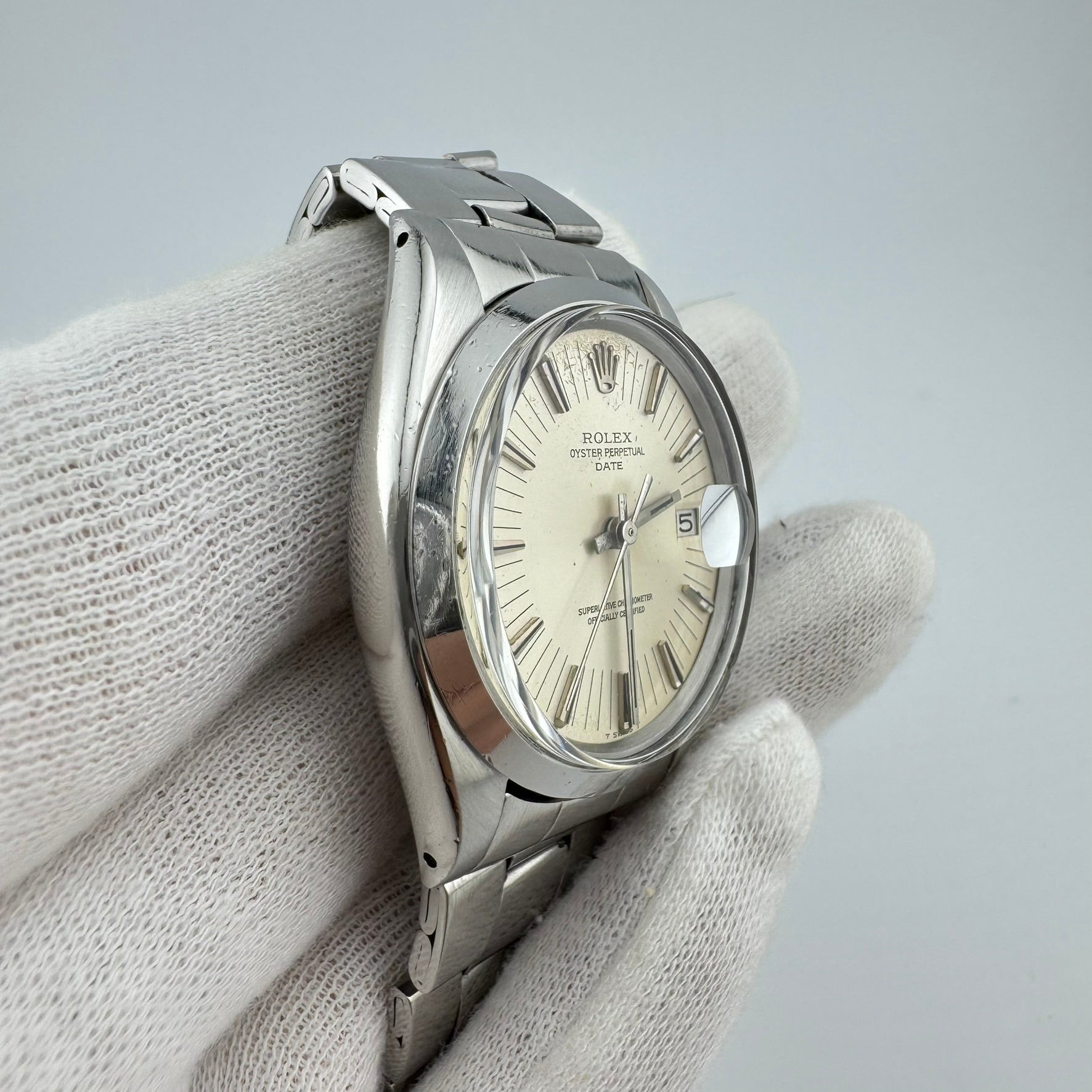 This watch is the Oyster Perpetual 1500 reference. The watch has had the original crystal replaced with a new aftermarket acrylic crystal. All of the original gaskets have been replaced, and the watch has been pressure tested to 5bar to ensure waterproofness.