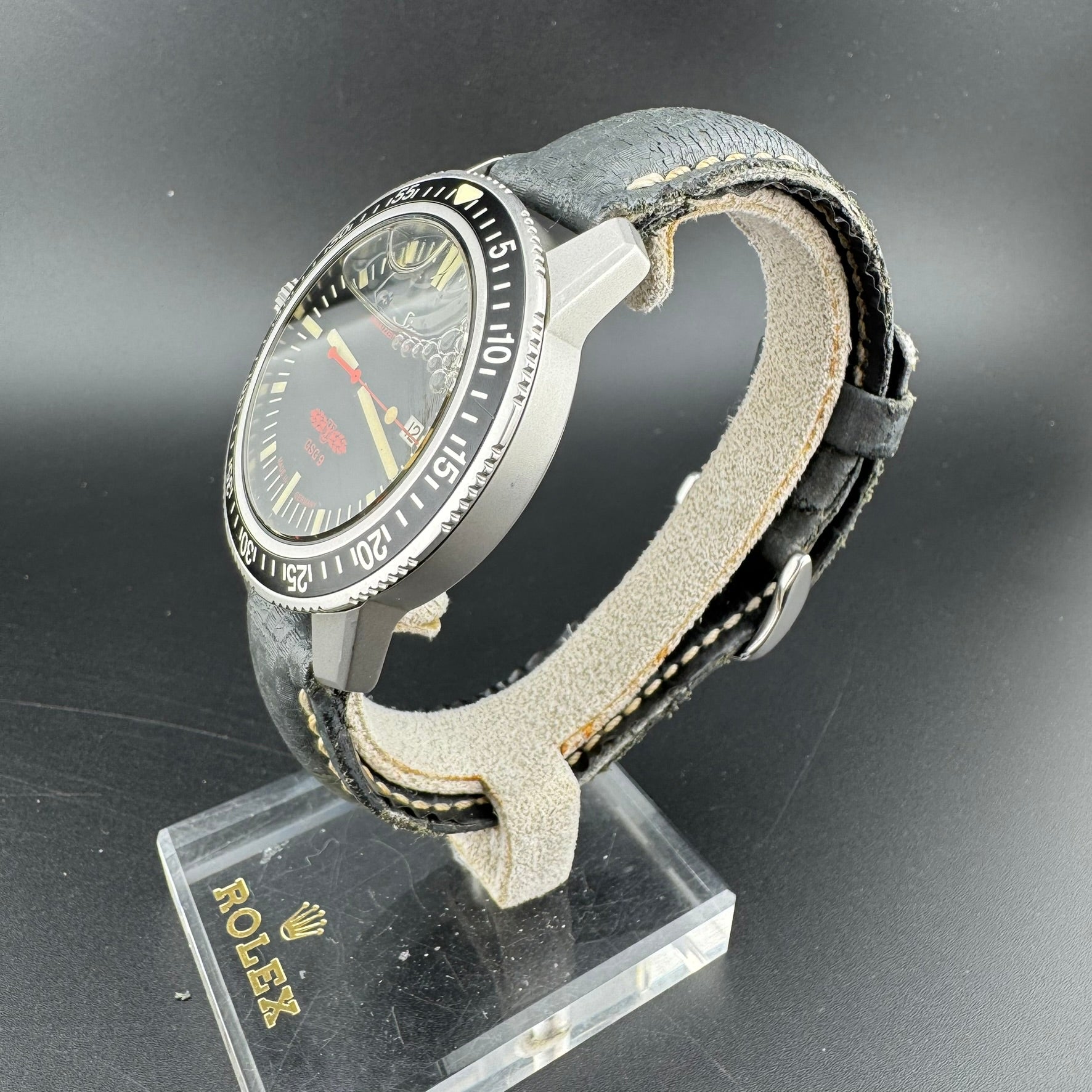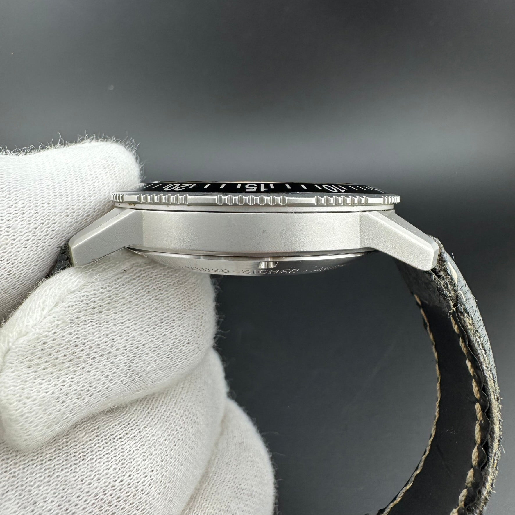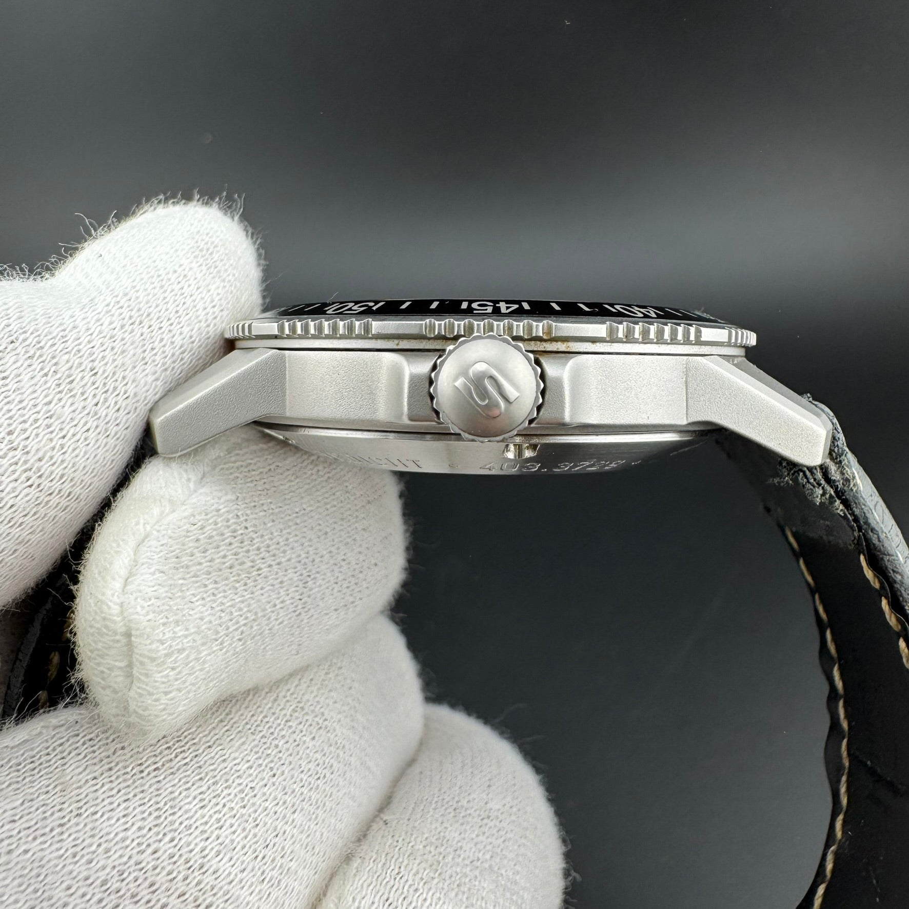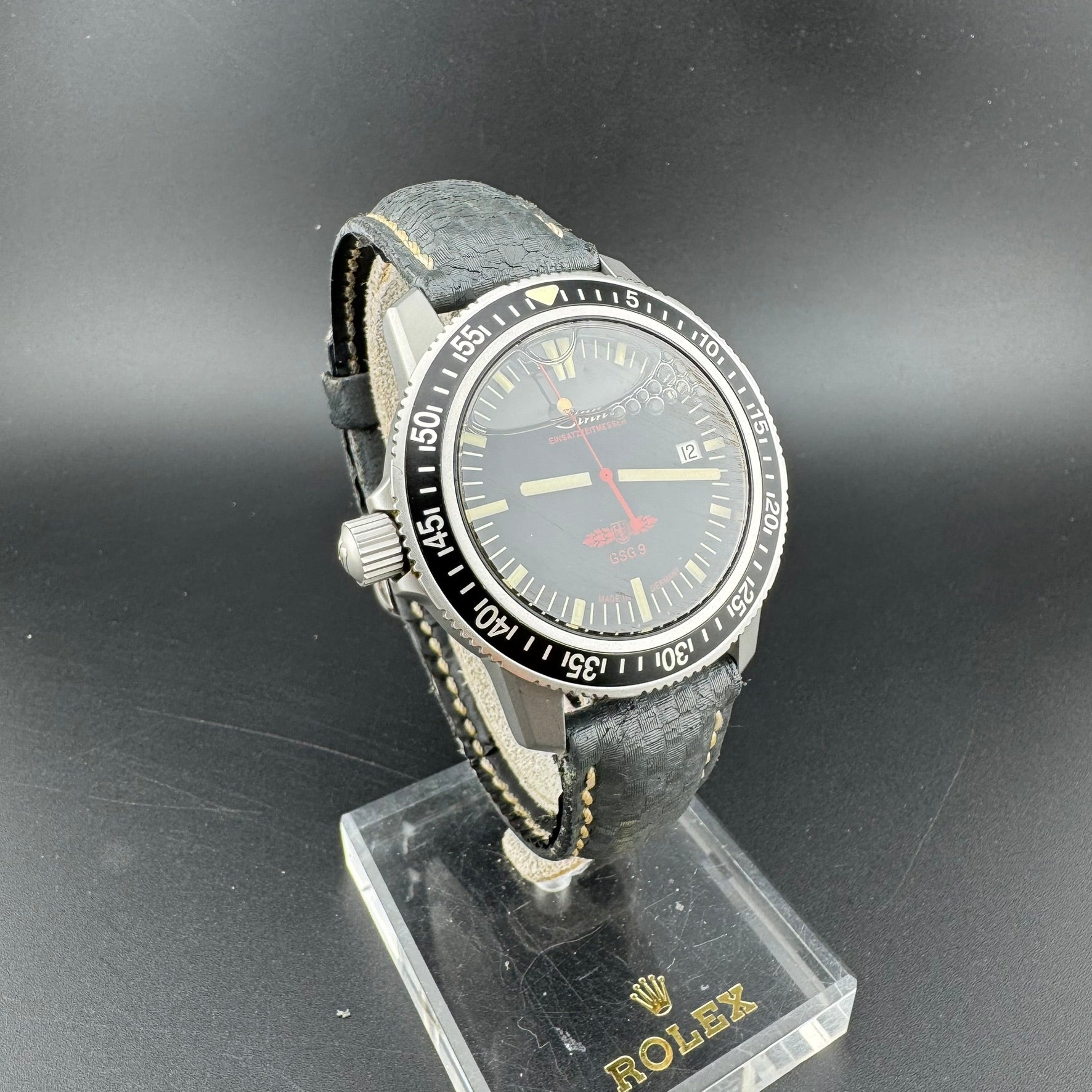 The cosmetic and mechanical condition of this watch is good, but the watch should be sent in to a Sinn service center to have the silicone oil refilled if there is intent for diving, as there are some air bubbles due to lack of oil.