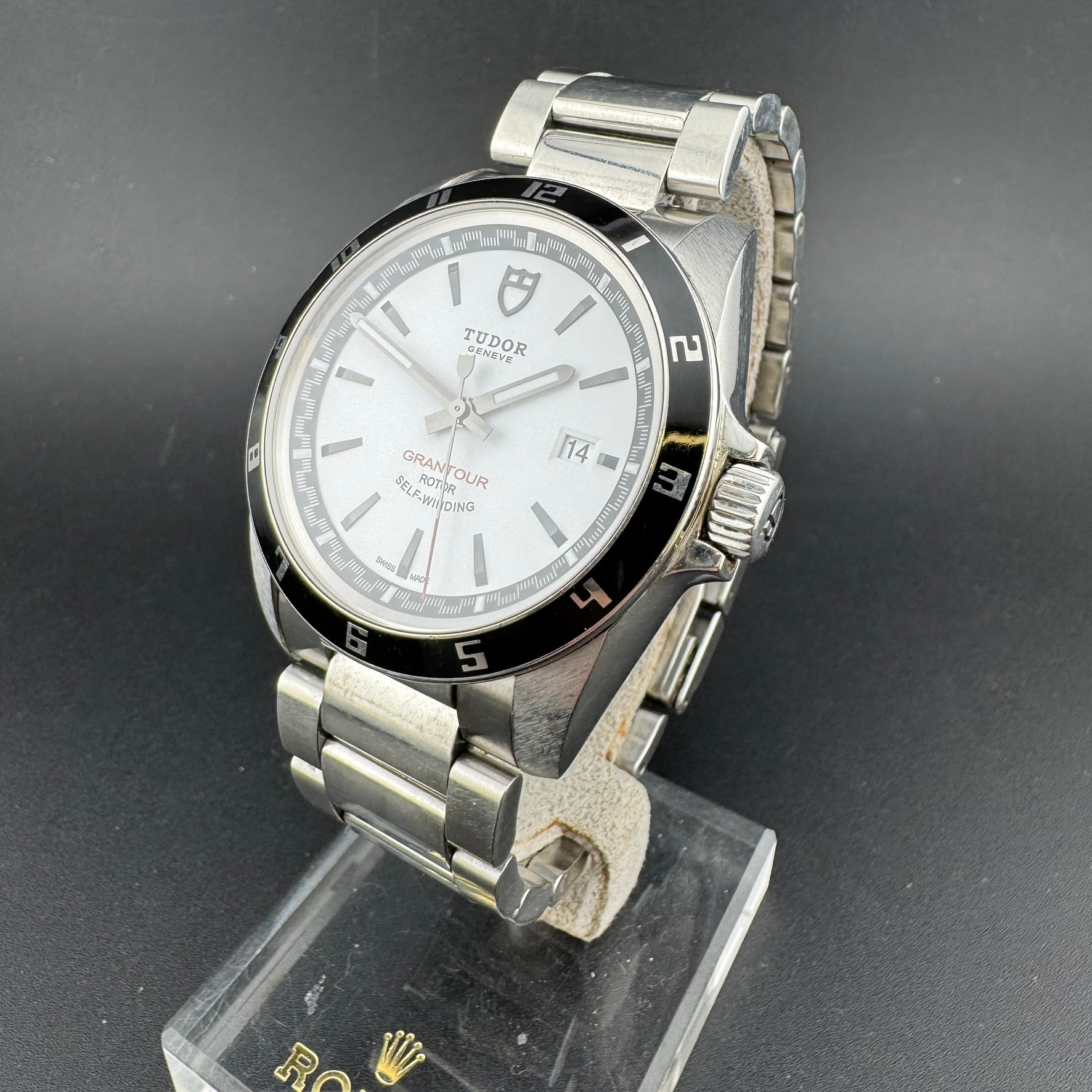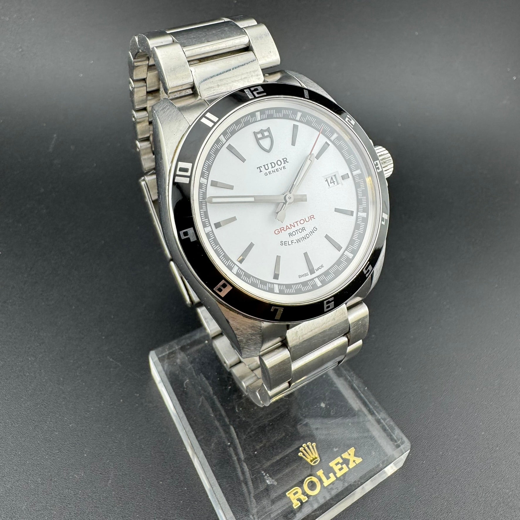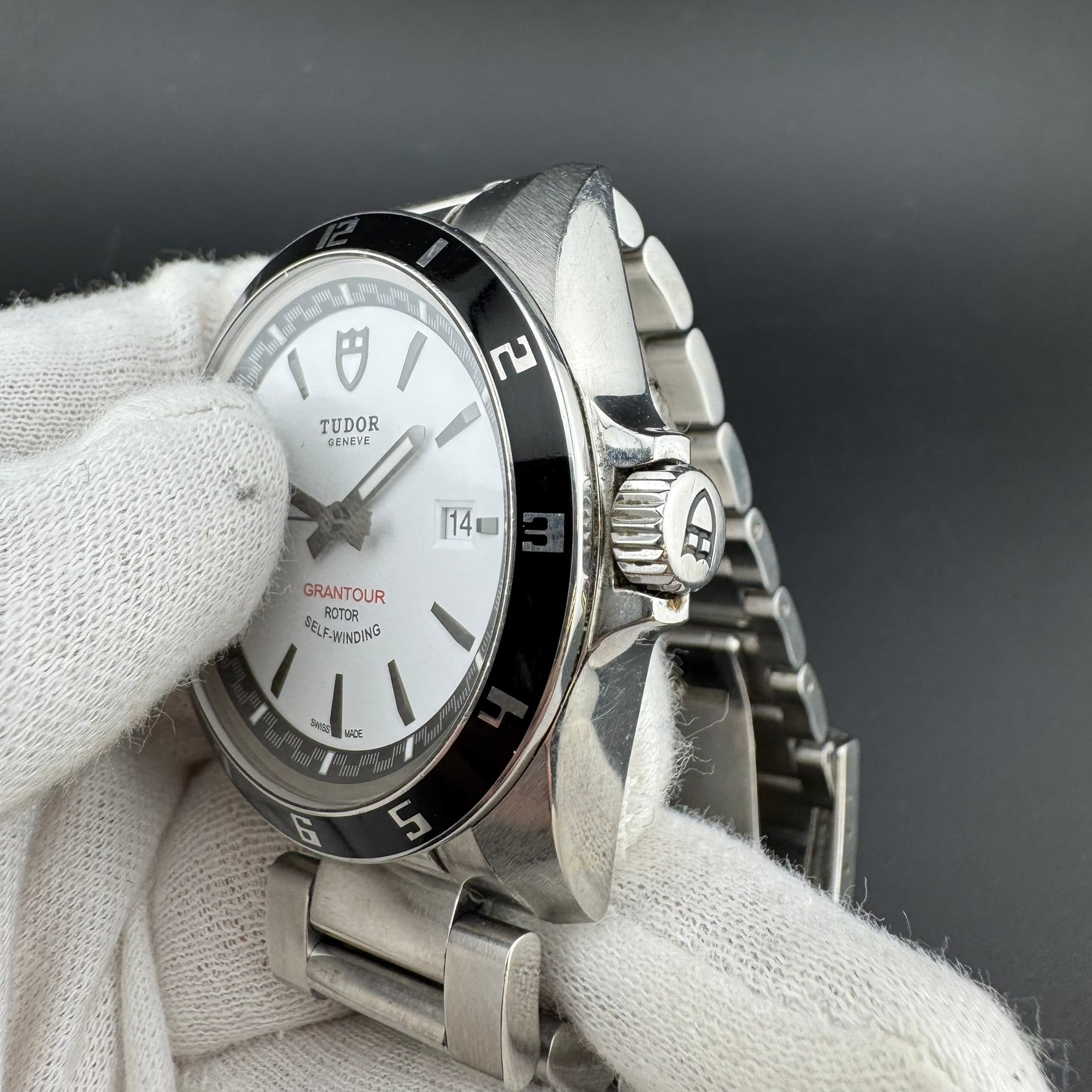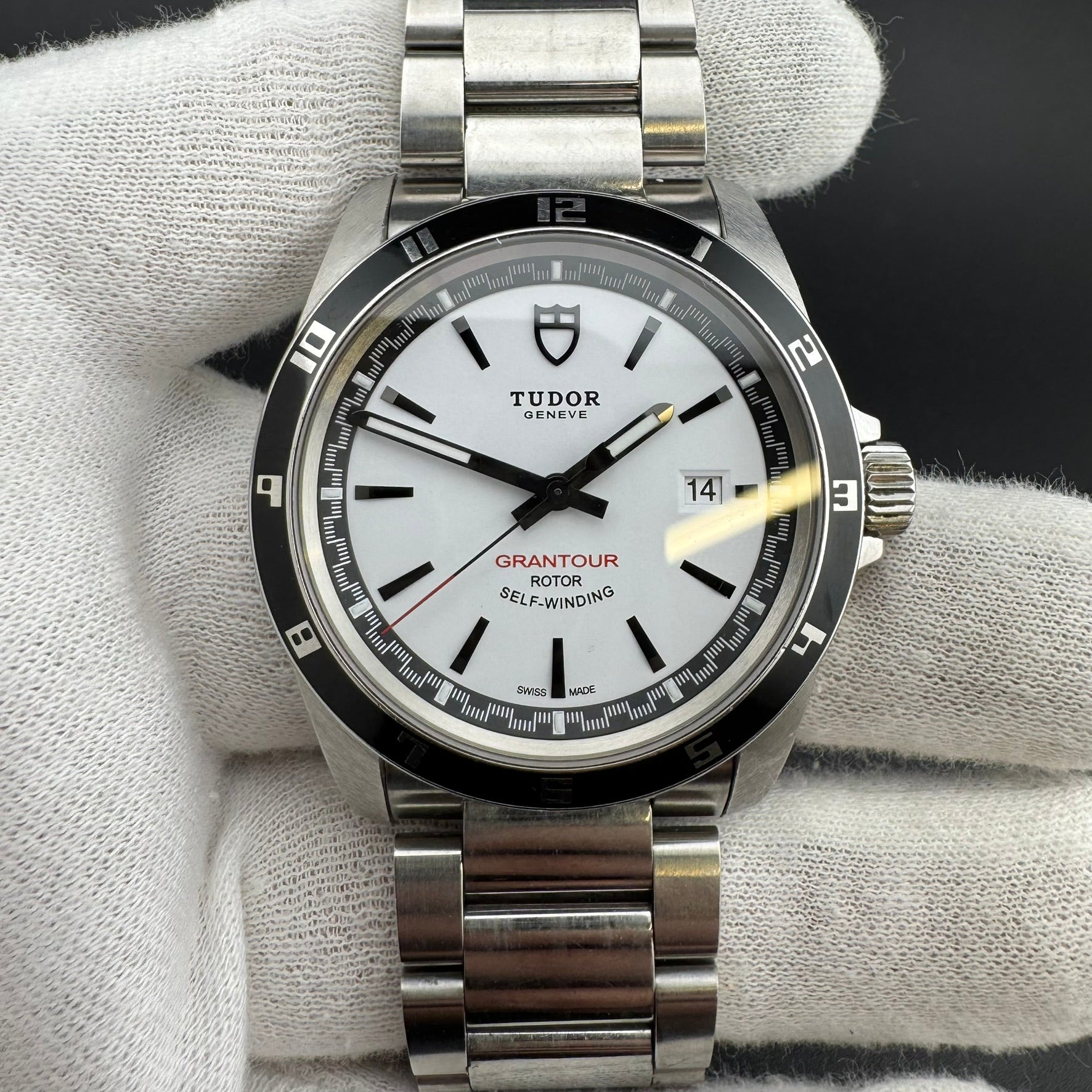This watch is the Grantour Date. Reference 20500. Overall, this watch is in (B) Good Condition. Moderate scratches and scuffs can be seen on the case and bracelet. Overall, the watch is in good functional and cosmetic condition.