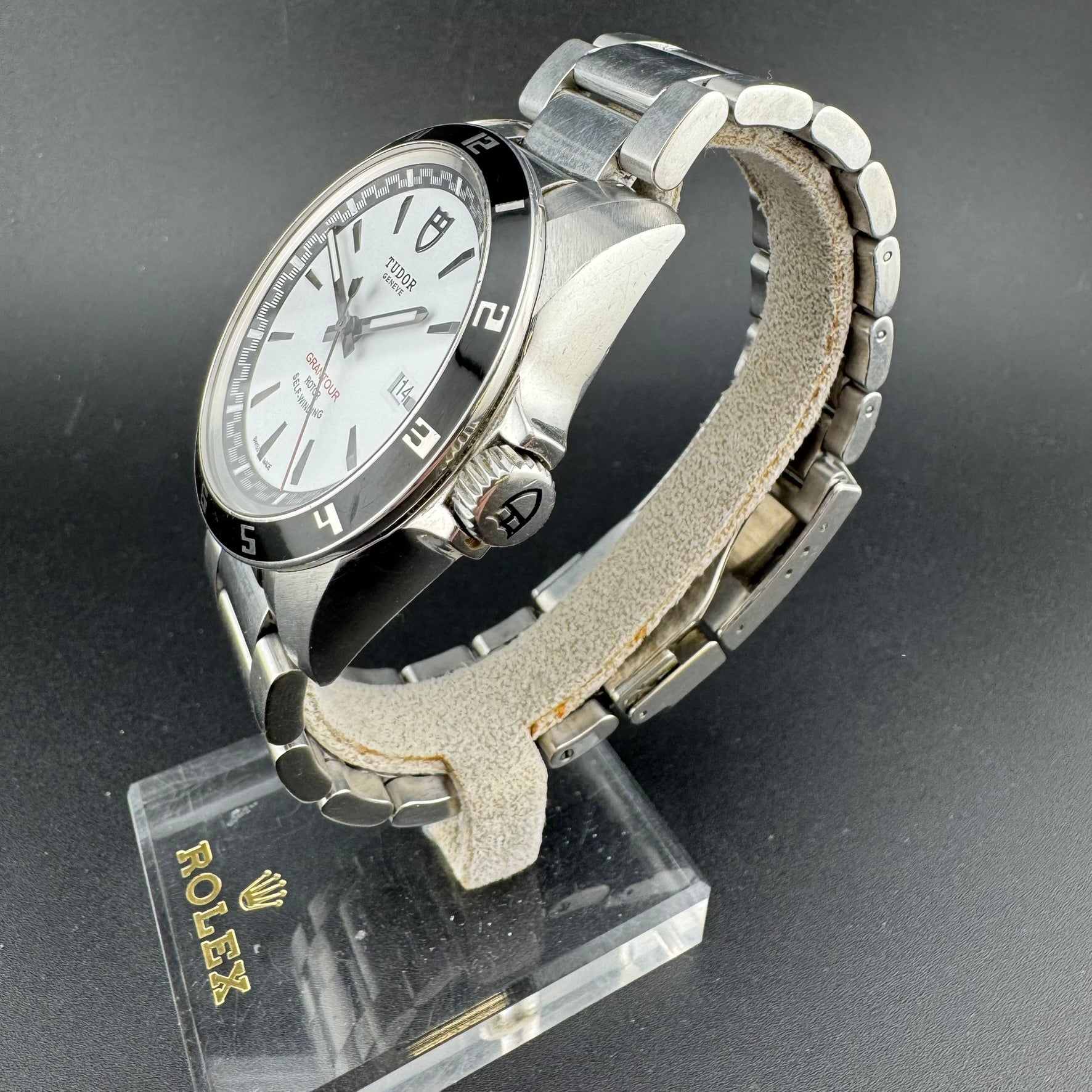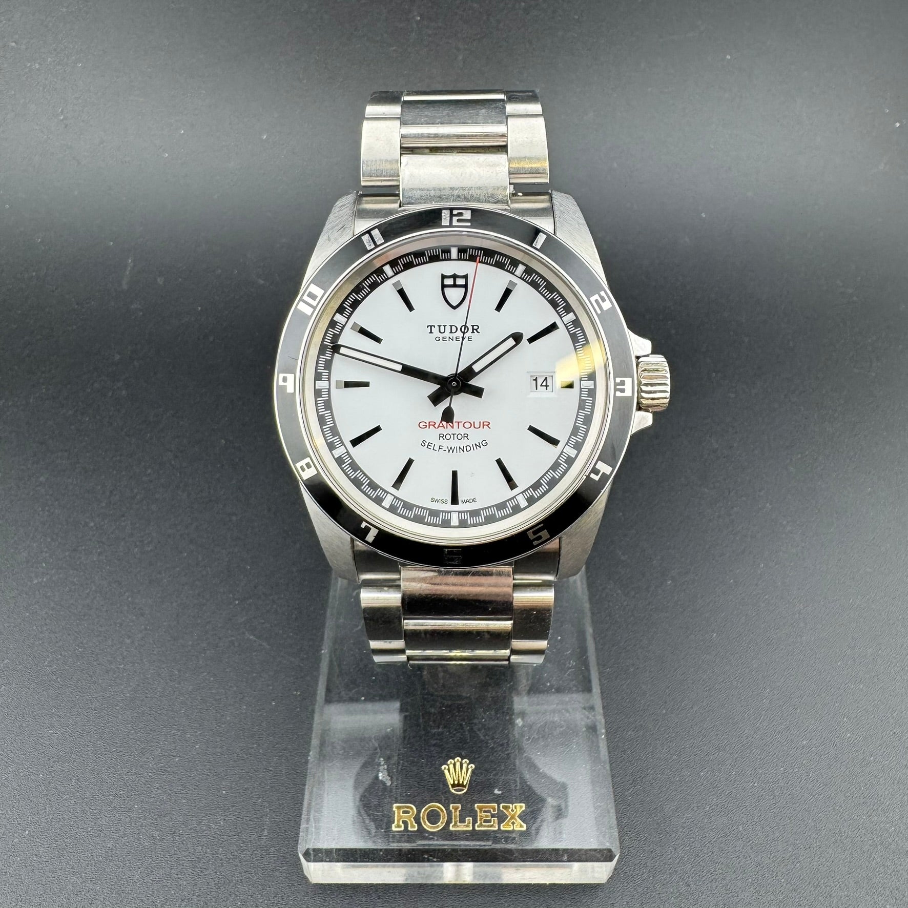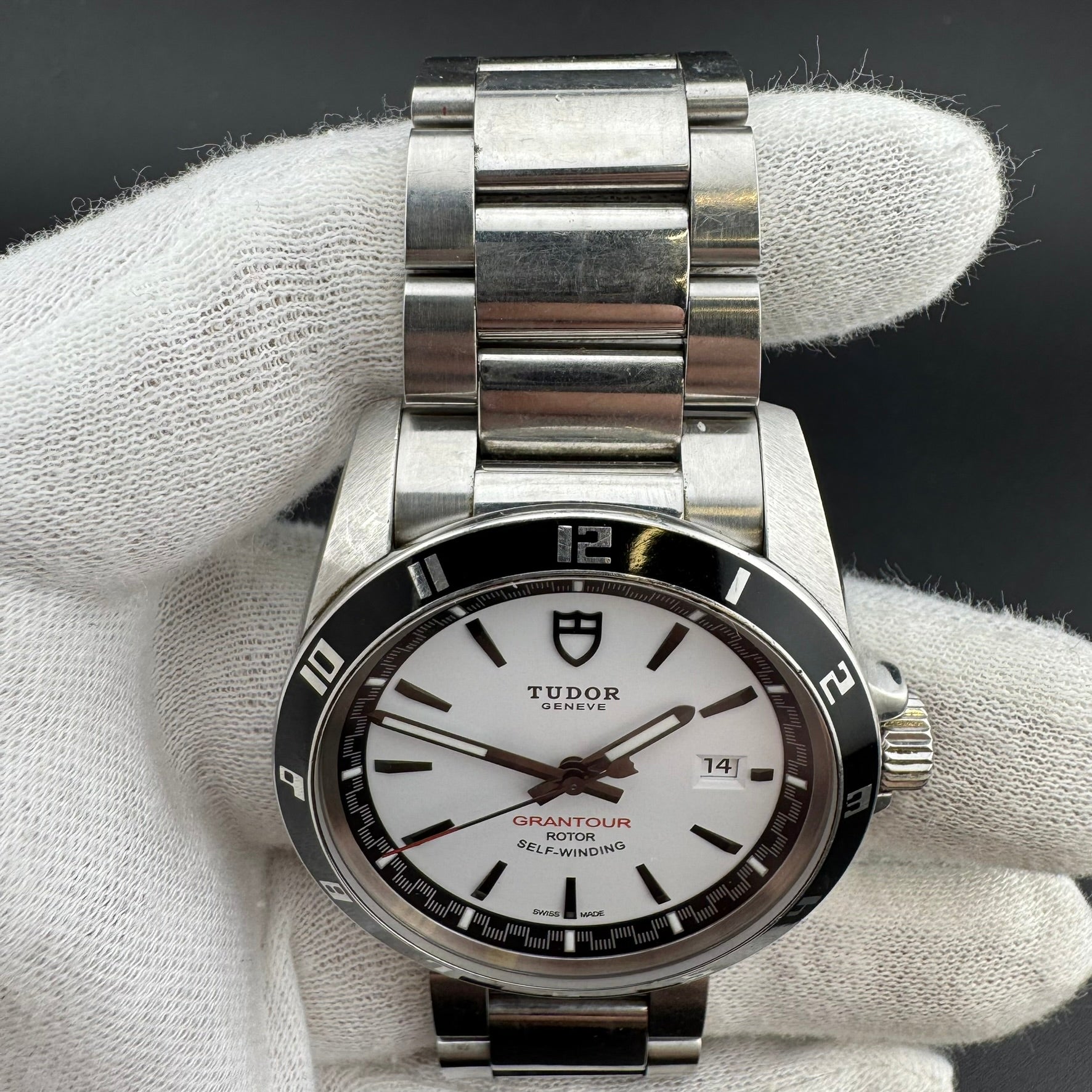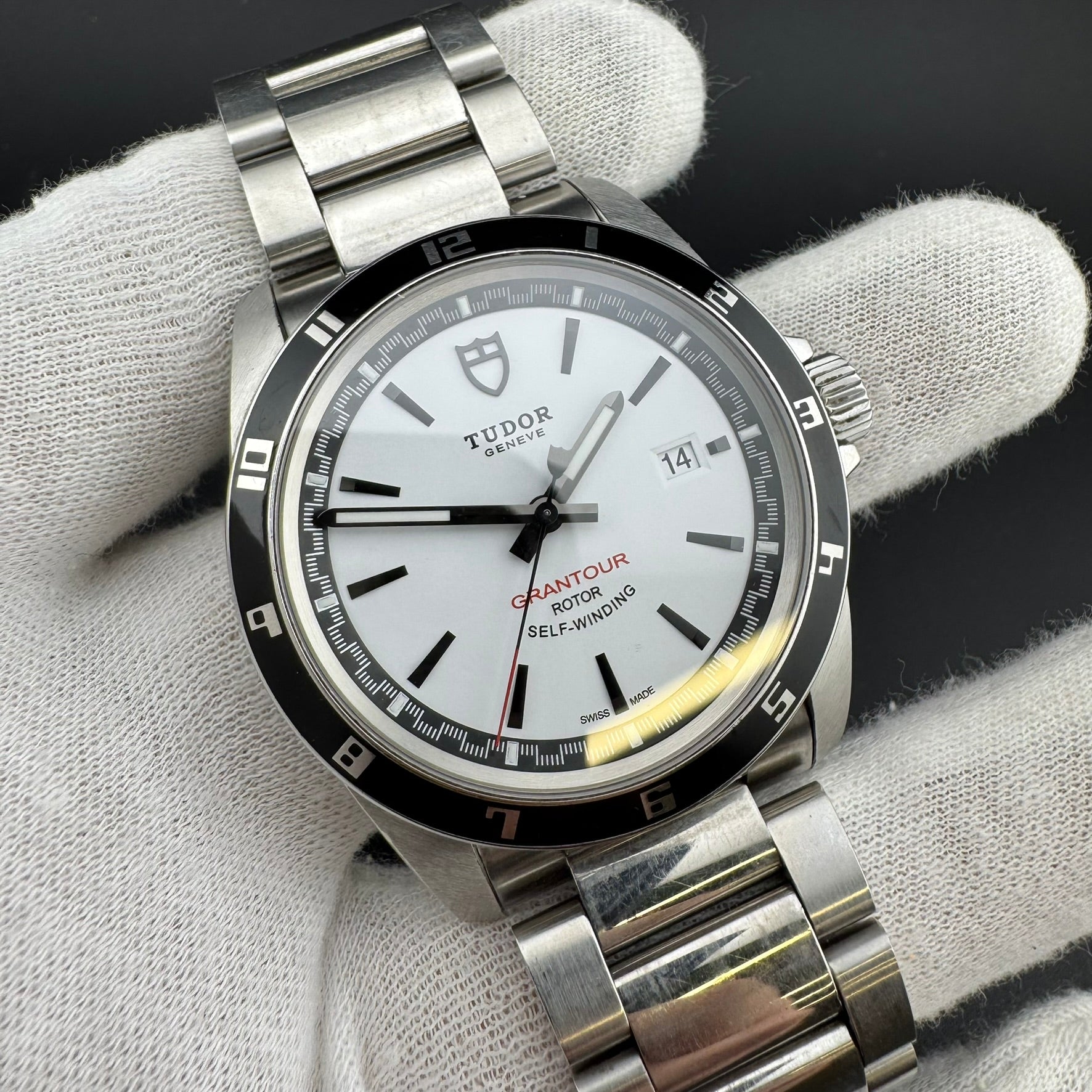 This watch is the Grantour Date. Reference 20500. Overall, this watch is in (B) Good Condition. Moderate scratches and scuffs can be seen on the case and bracelet. Overall, the watch is in good functional and cosmetic condition.