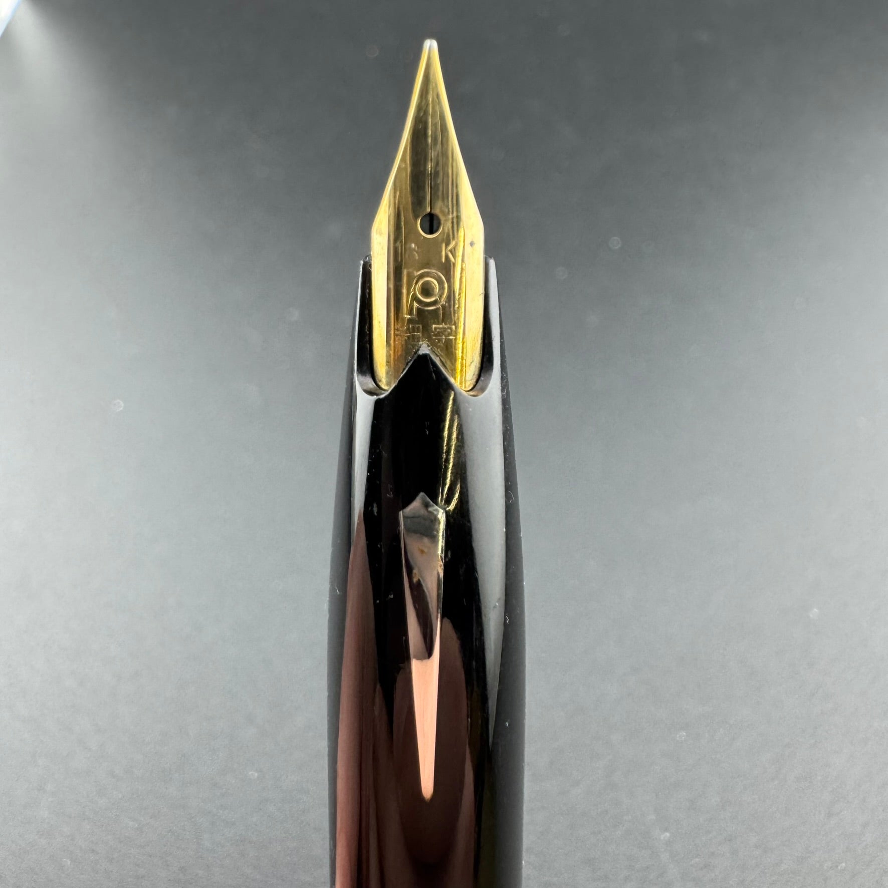 Platinum nibs are usually made out of 18K gold, but can sometimes be found with 14K, 22K, and even 23K gold in pens produced at the height of the karat wars. They are marked with Chinese symbols known as "Kanji" which indicate the nib size. By translating these symbols, we can properly determine the nib size of each pen.