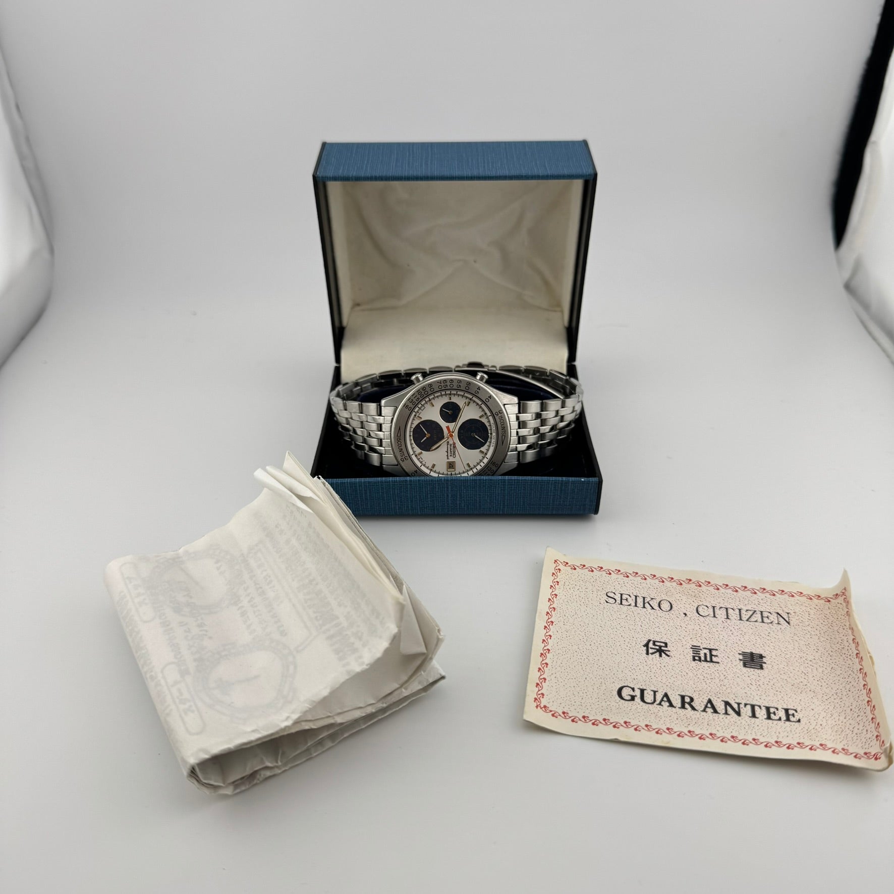 - Band: Original Stainless Steel Seiko Bracelet. Will Fit Wrists up to 8in