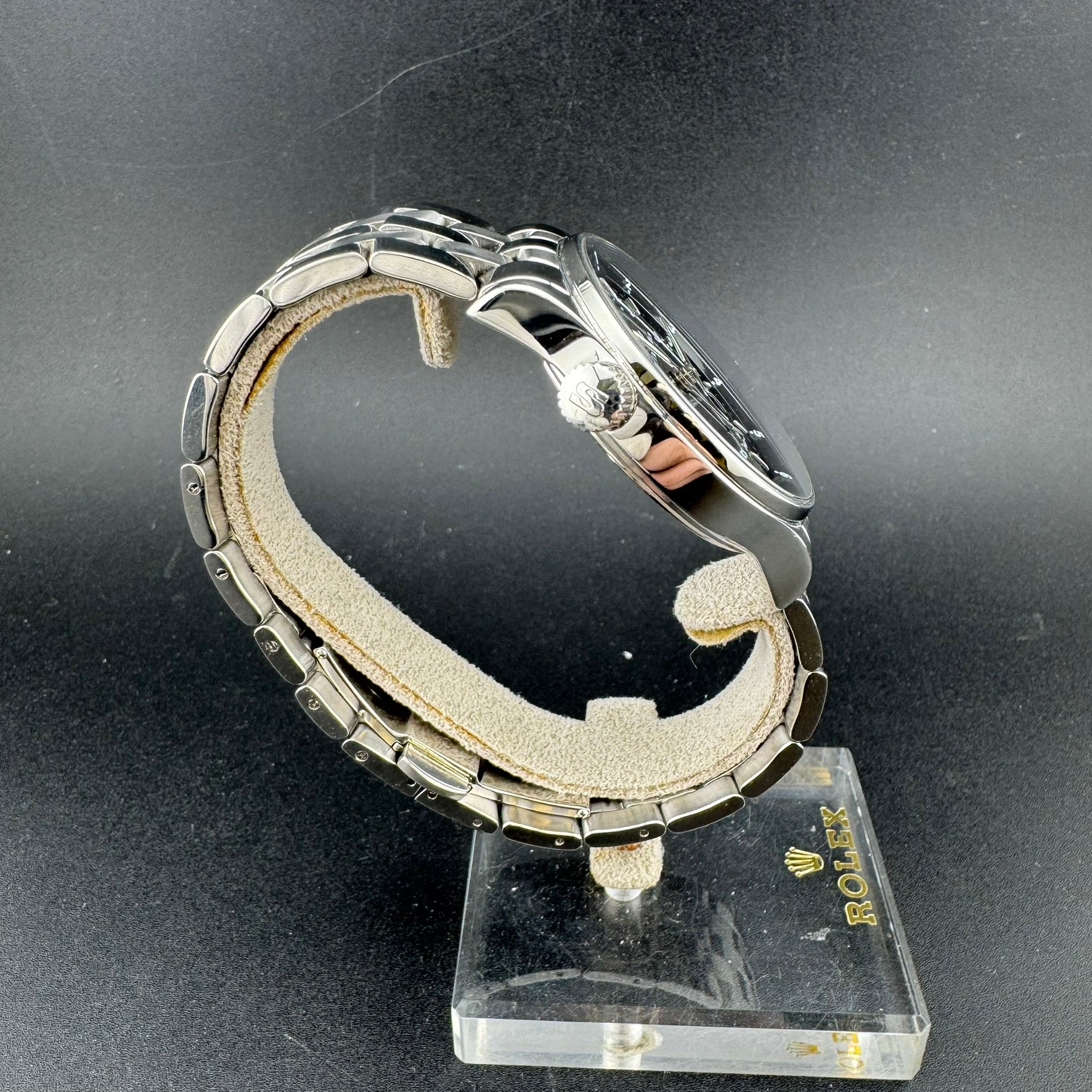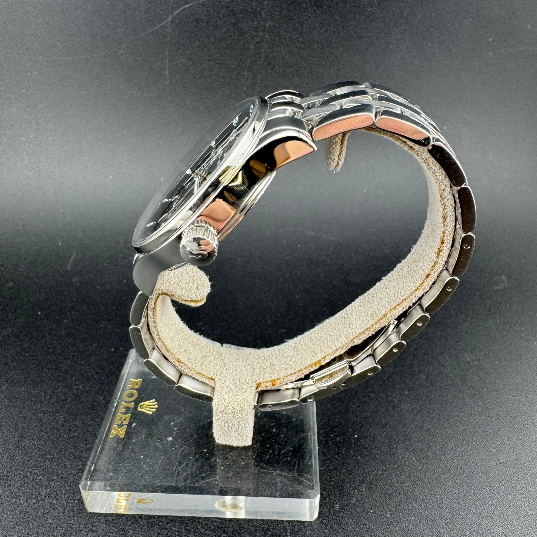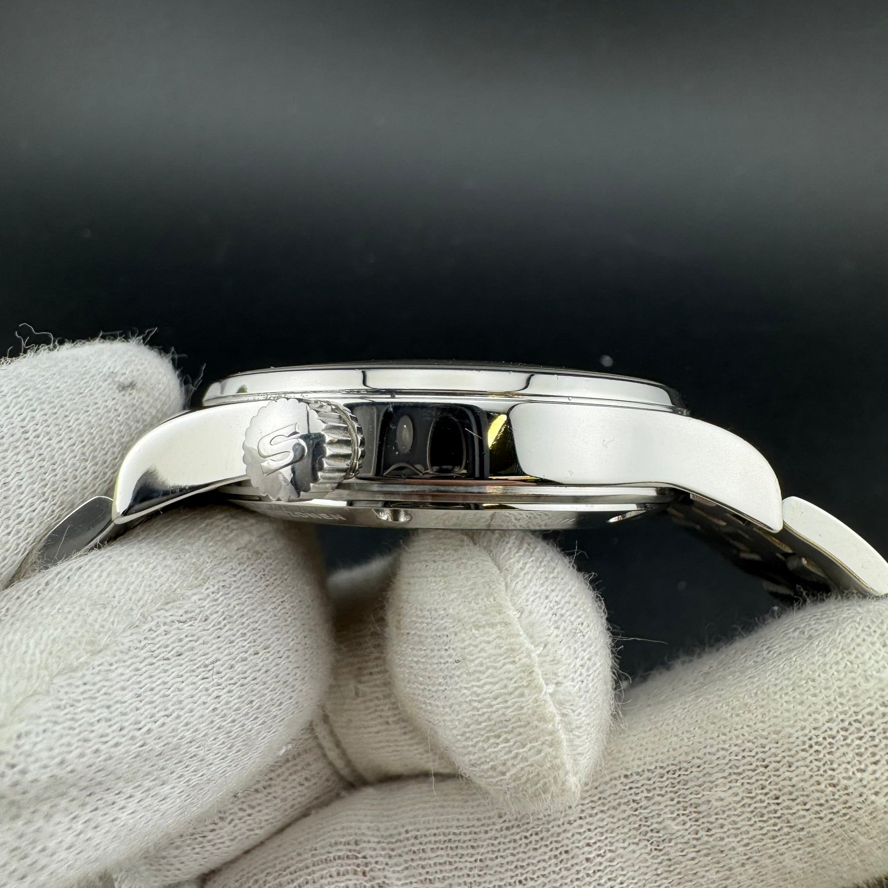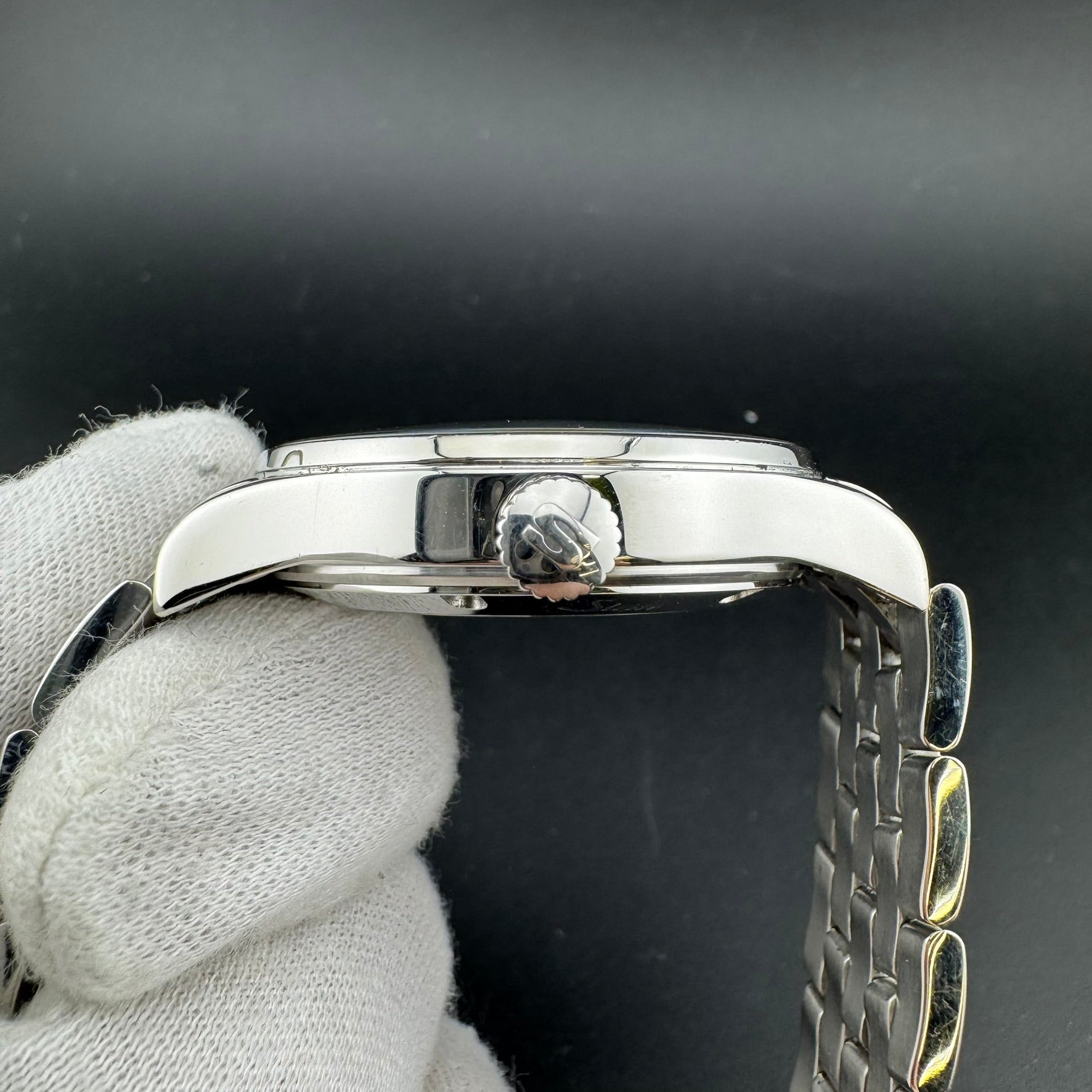 -A+: Item is in Excellent condition. Micro-scratches can be seen on the sides of the case, bezel, and/or bracelet. No pitting/gouges on the case or scratches in the crystal.